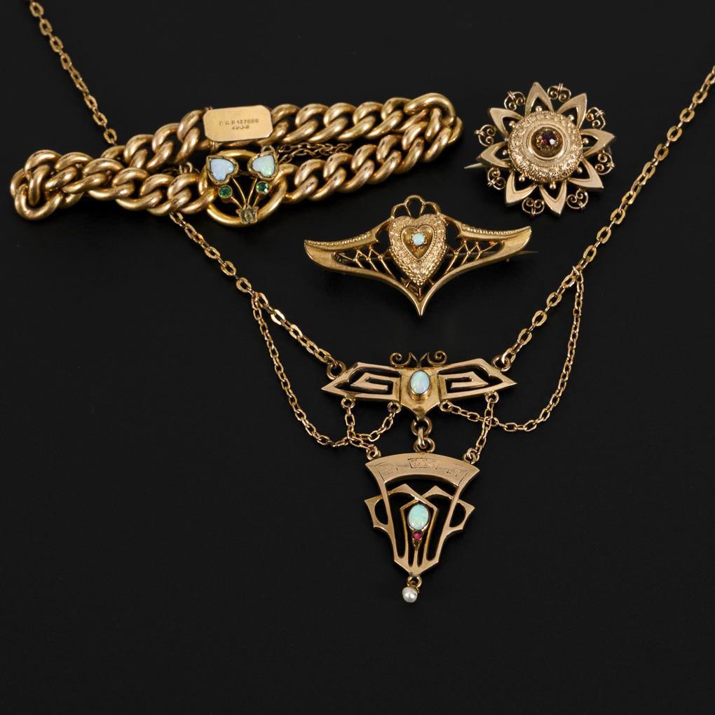 4 Schmuckstücke mit Opalen, um 1900.