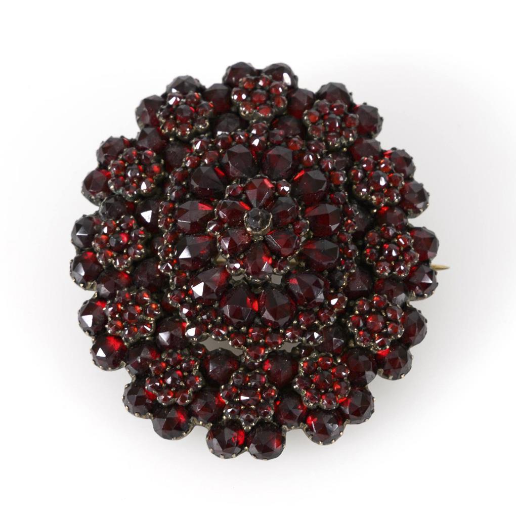 Große Medaillonbrosche/Anhänger mit Granaten Ende 19. Jh.
