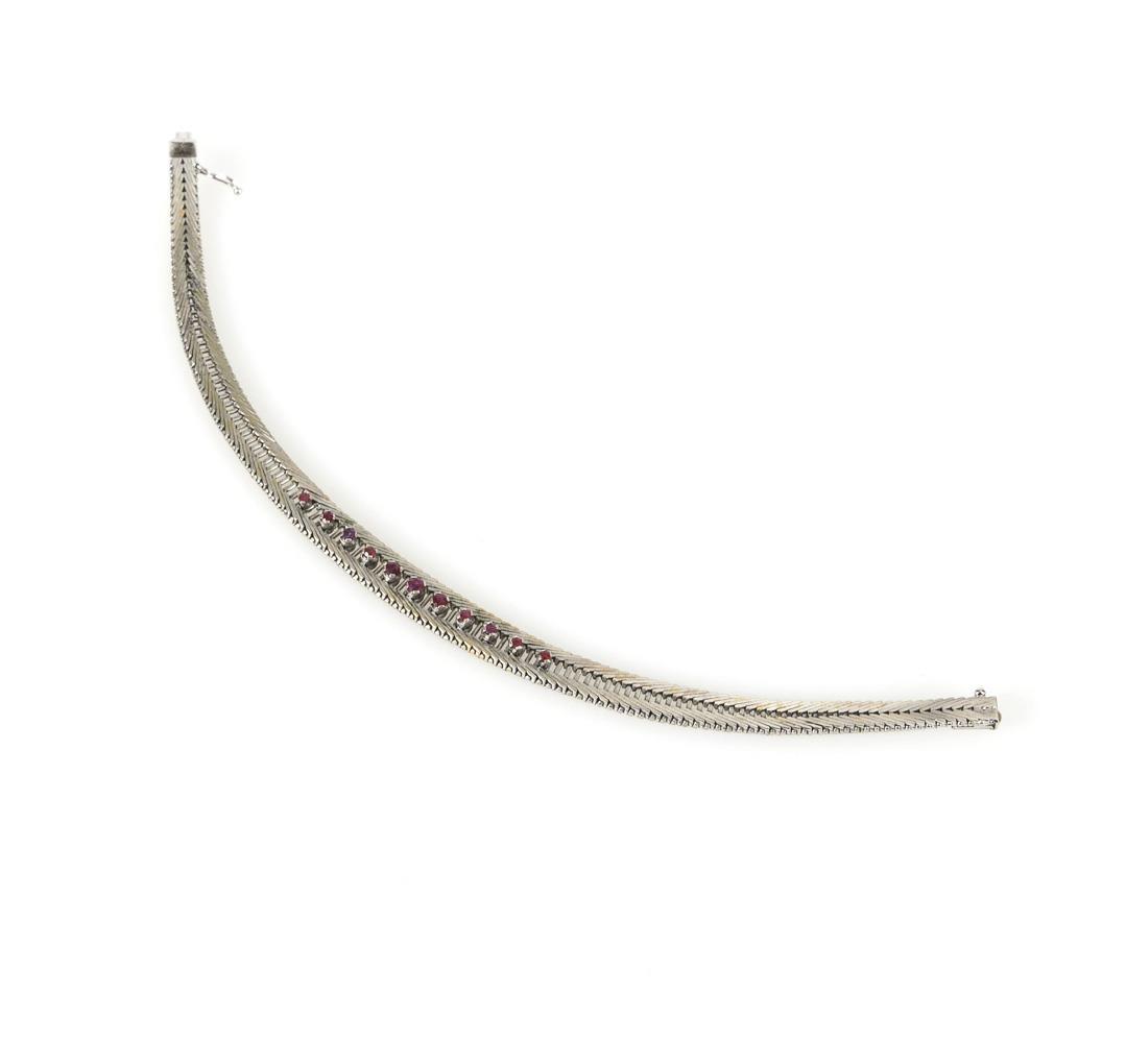 11 chatongefasste Rubine auf Ziergliederband, an Kastenschloss mit Achtersicherung.