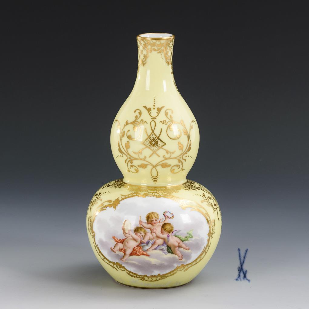 Kürbisvase mit Puttenmalerei. Meissen.