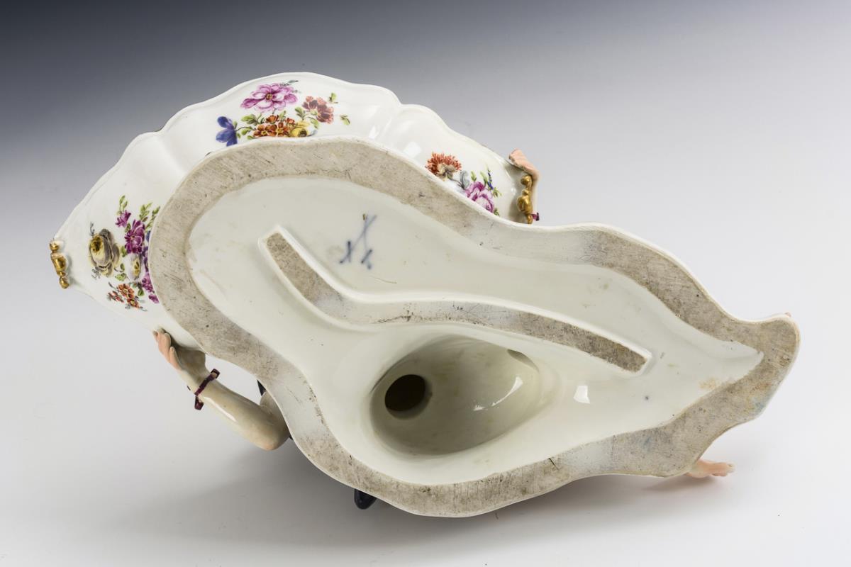Polychrom bemalt, goldstaffiert. L 32,5 cm, H 17,5 cm.