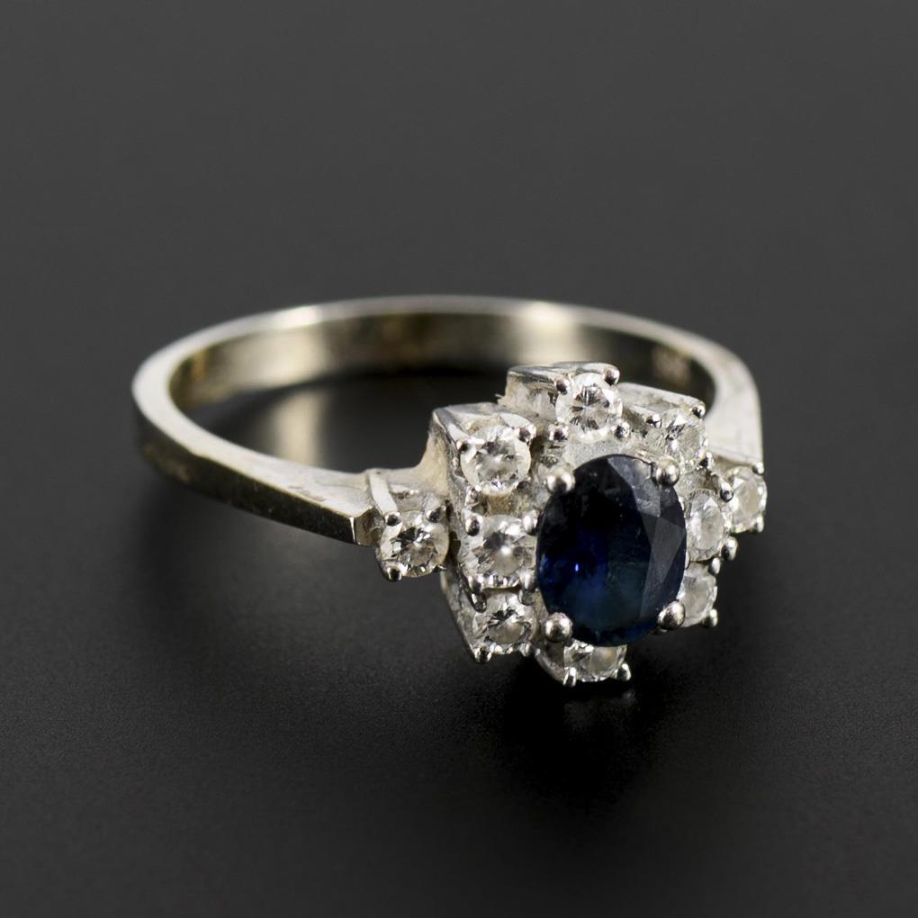 Weißgold 585 gestempelt. Brillanten zus. 0,54 ct/Saphir 0,97 ct. Ringgröße 63. 5,0 g.
