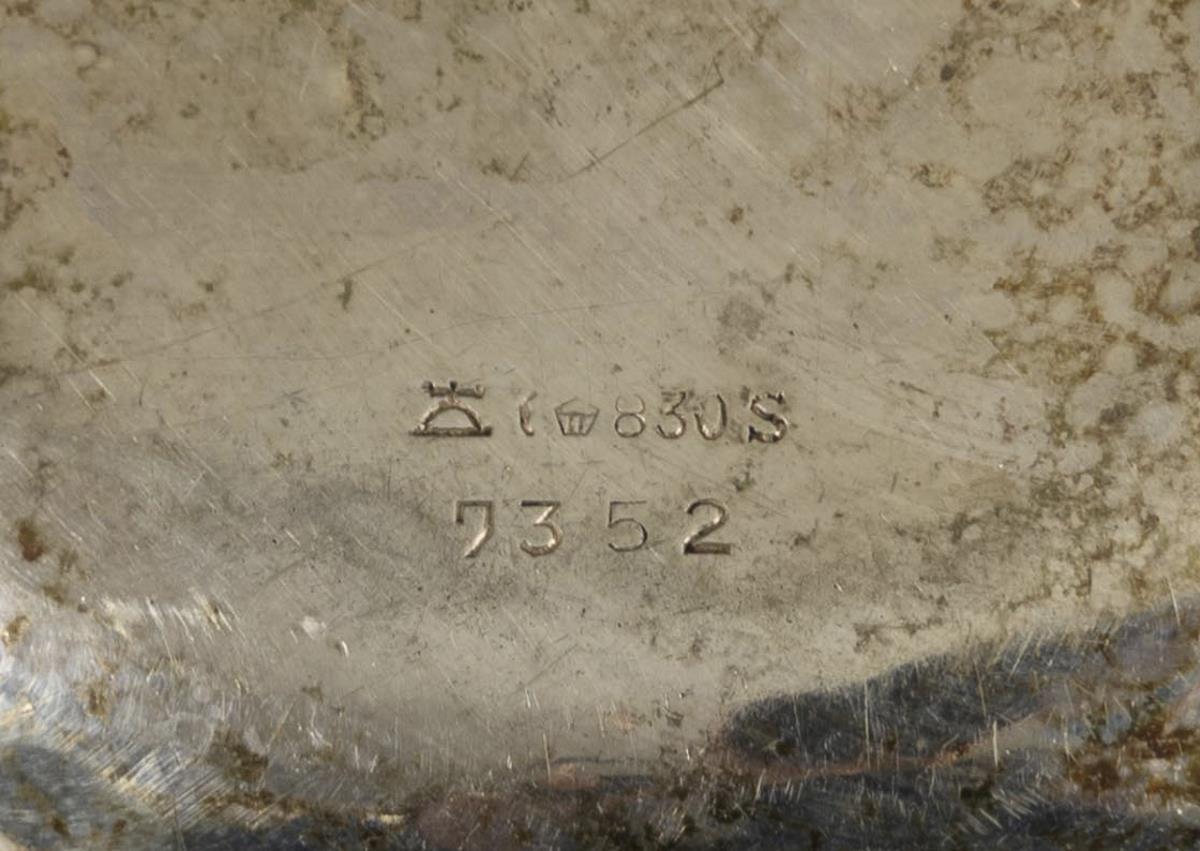 Firmenzeichen/Halbmond/Krone/830 S gepunzt. Werksentwurf Anfang 1930er Jahre. Modellnr. 7351-7353.