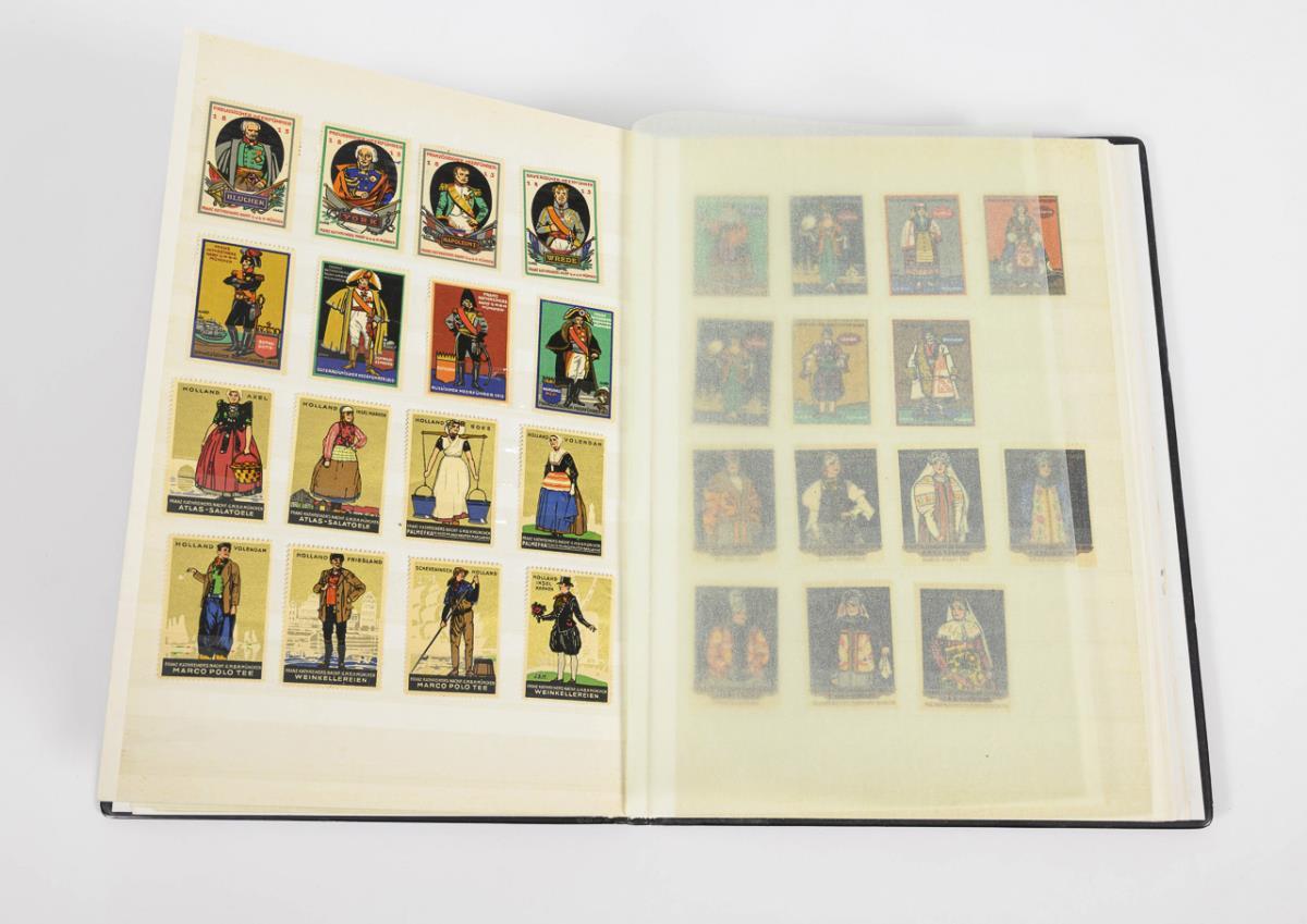 Rotes Briefmarkenalbum mit ca. 198 Reklamemarken zumeist in Briefmarkenform: Werbung für Aecht Franck, Marco-Polo-Tee, Atlas-Kakao, Palmefka, Kathreiners Malzkaffee usw.