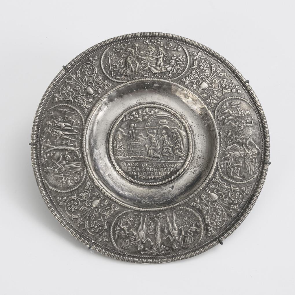 Barocker Nürnberger Reliefzinnteller: Noah.