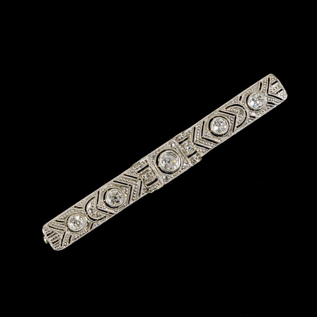 Art-déco-Brosche mit Altschliff-Diamanten und Diamantrosen.