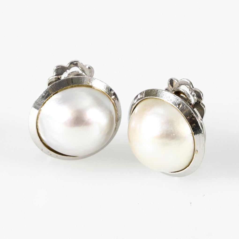 Weißgold 585 gestempelt. Perlen Ø 13,2 mm. Ohrklipp Ø 1,62 cm. 10,4 g.