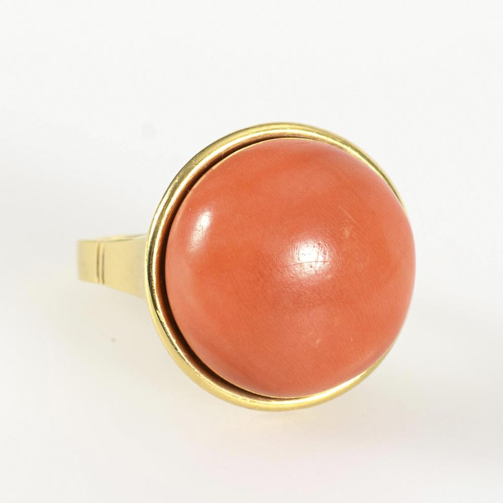 Gelbgold 585 geprüft. Ø Koralle 17,0 mm. Ringgröße 53. 10,3 g.