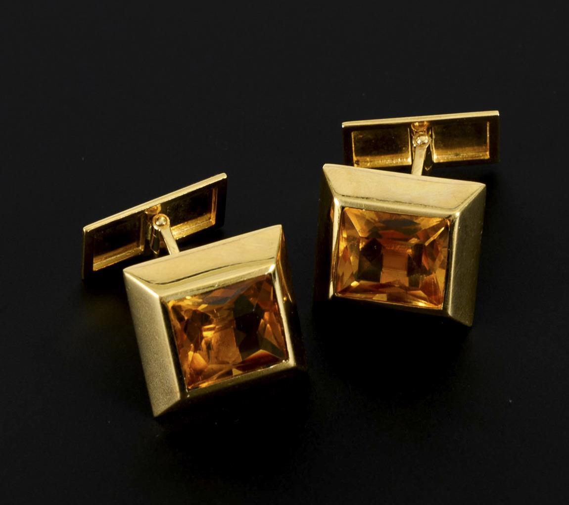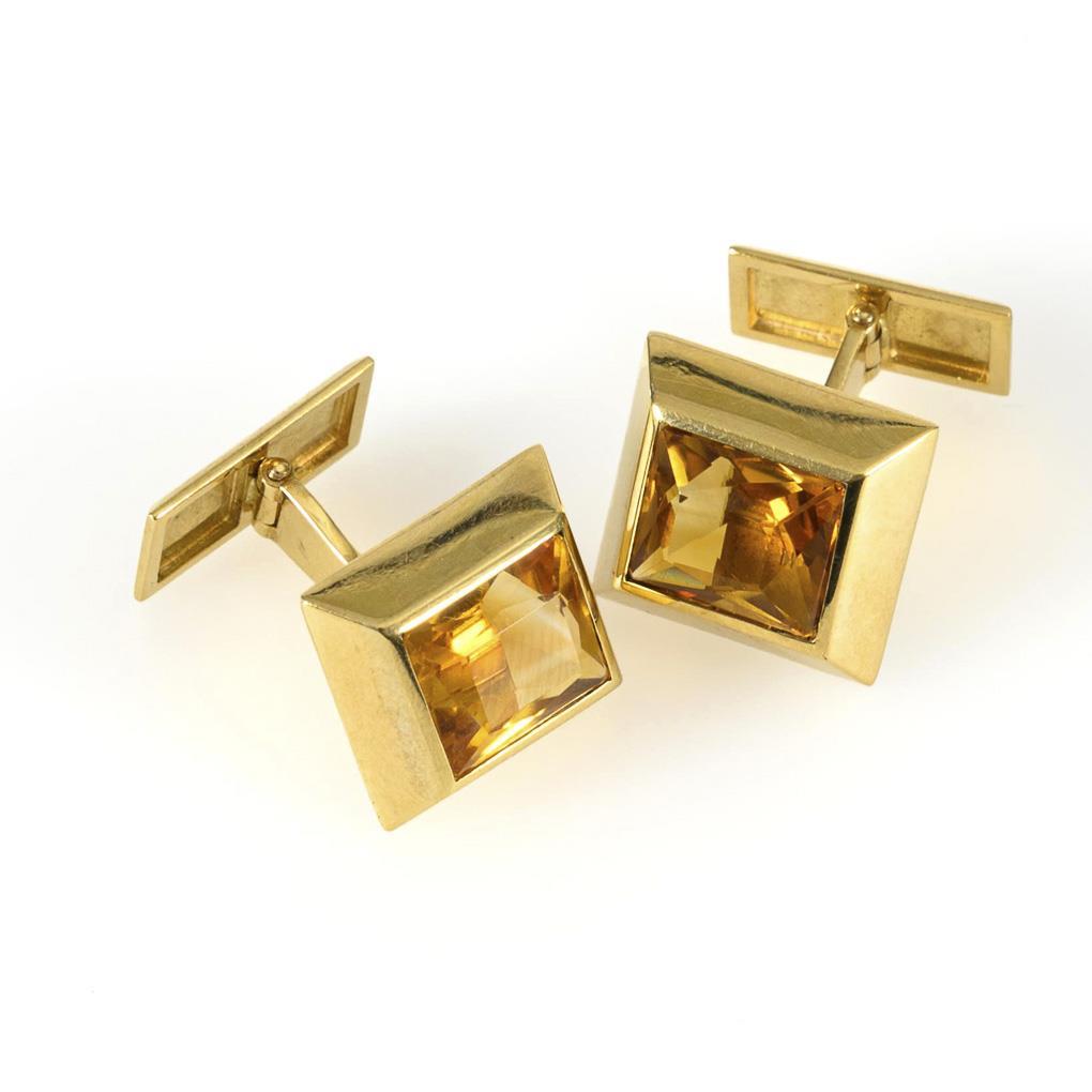 Exquisites, modernes Manschettenknopf-Paar mit Citrinen.
