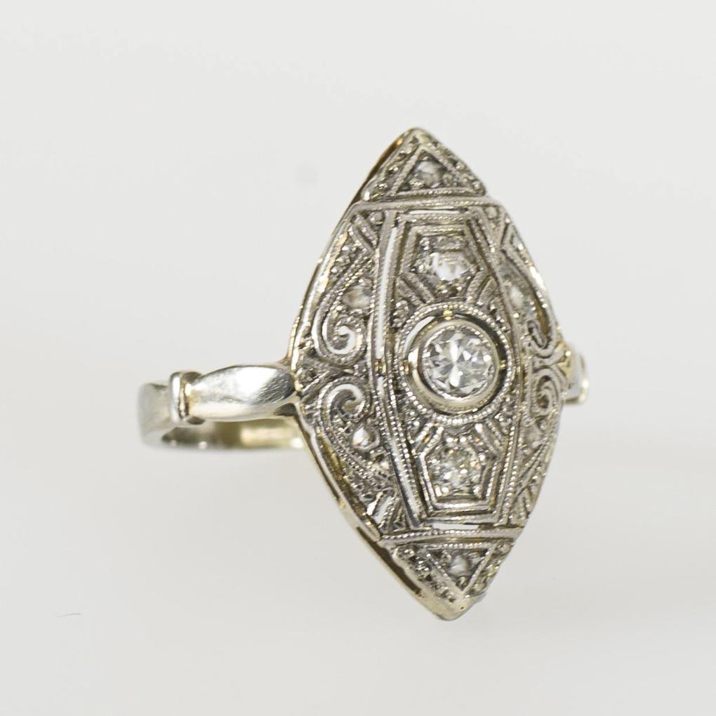 Art-déco-Ring mit Altschliff-Diamanten und Rosendiamanten.