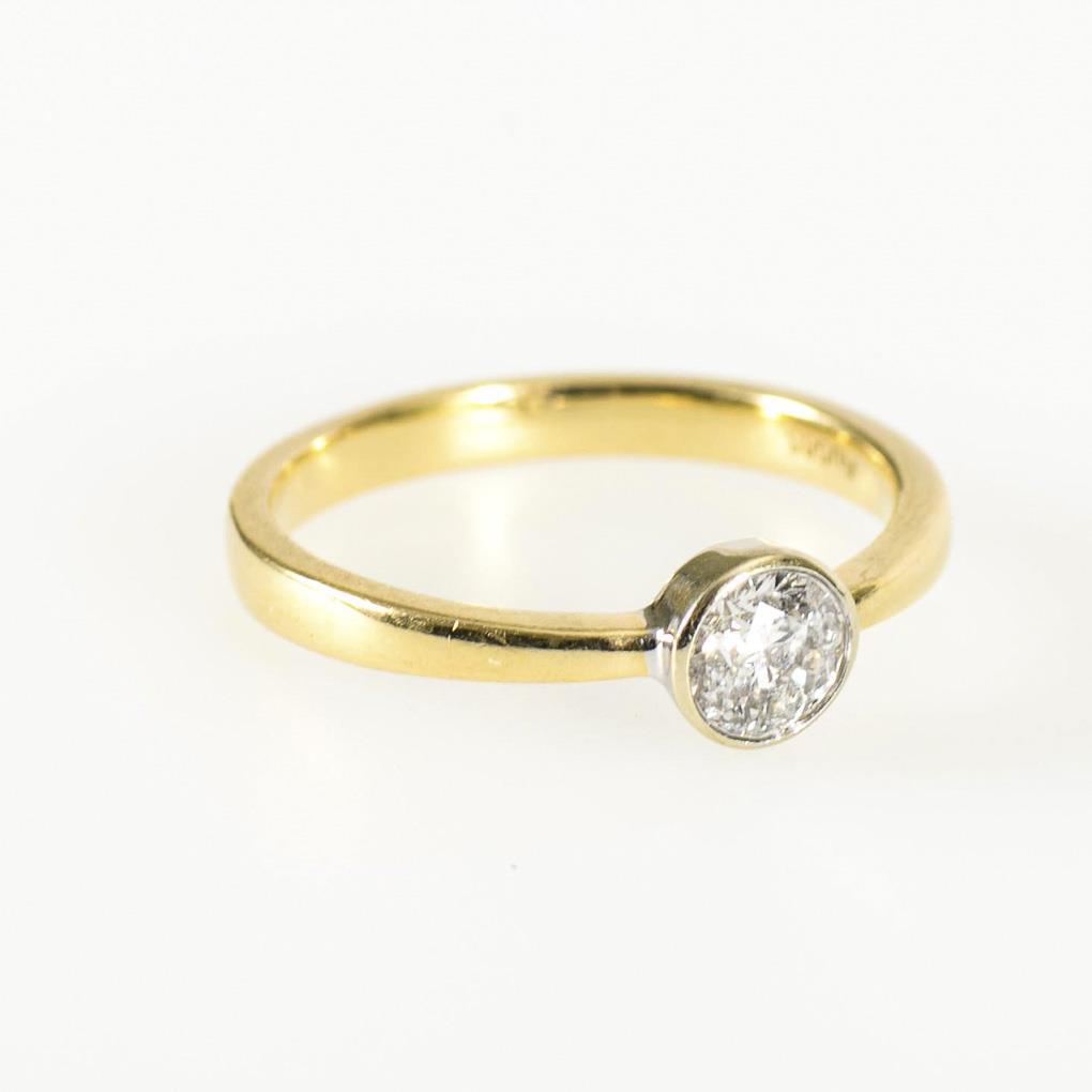 Gelbgold 585 gestempelt. Brillant ca. 0,60 ct/Weiß/PI. Ringgröße 57. 2,8 g.