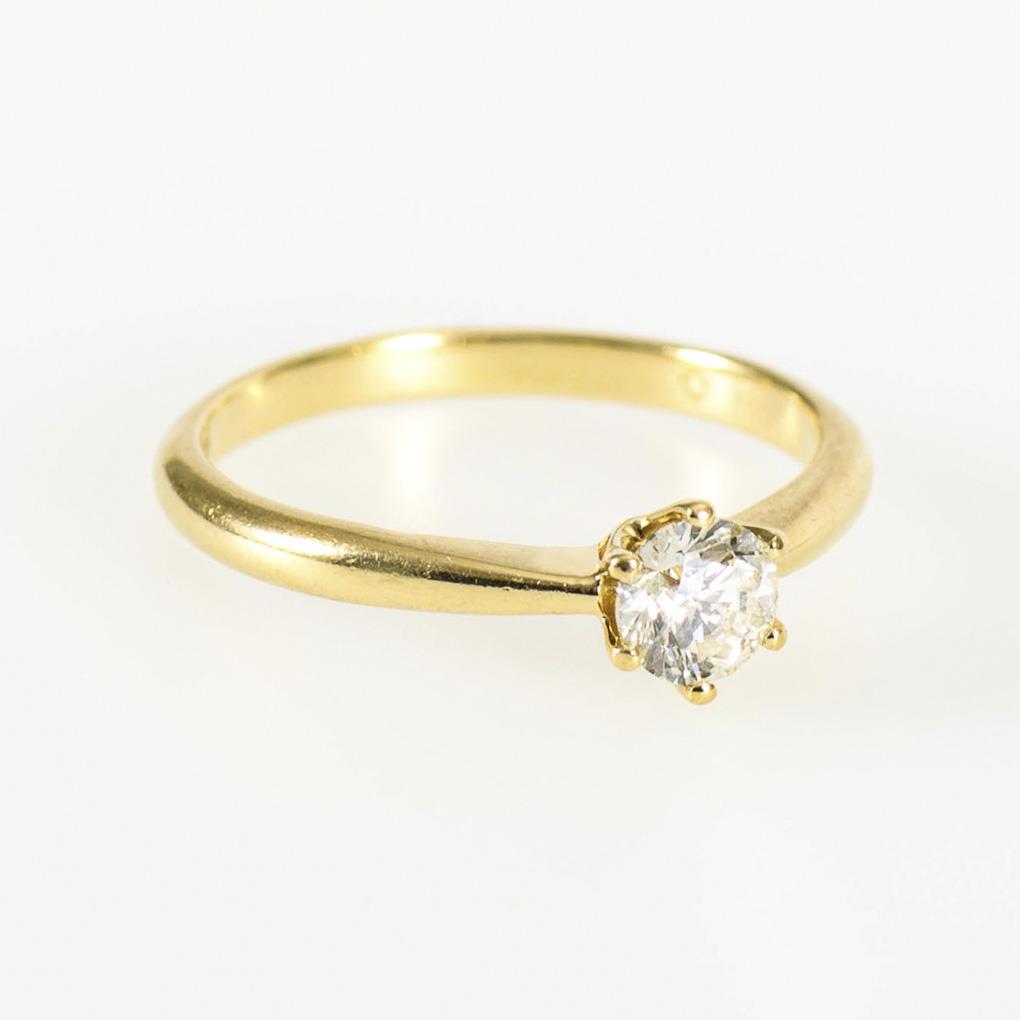 Gelbgold 585 gestempelt. Brillant ca. 0,50 ct/Weiß/PI. Ringgröße 57. 2,6 g.