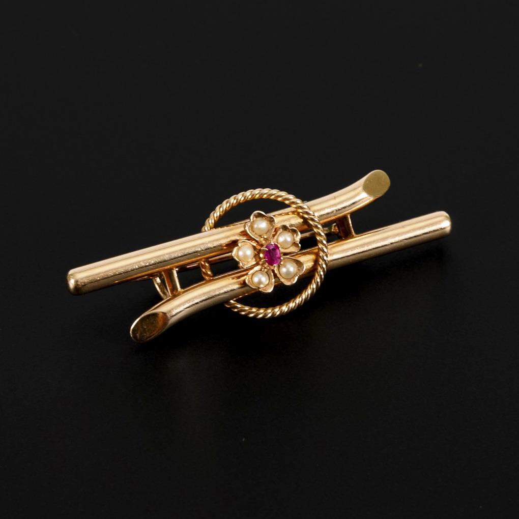 Brosche mit Rubin und Saatperlen, um 1900.