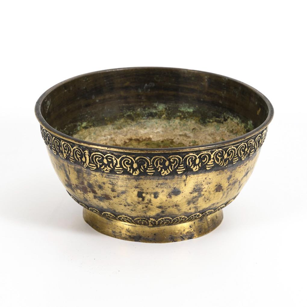 Gegossene Form mit zwei reliefierten Musterkanten. Alters- und Gebrauchsspuren, innen Kalkablagerungen.
