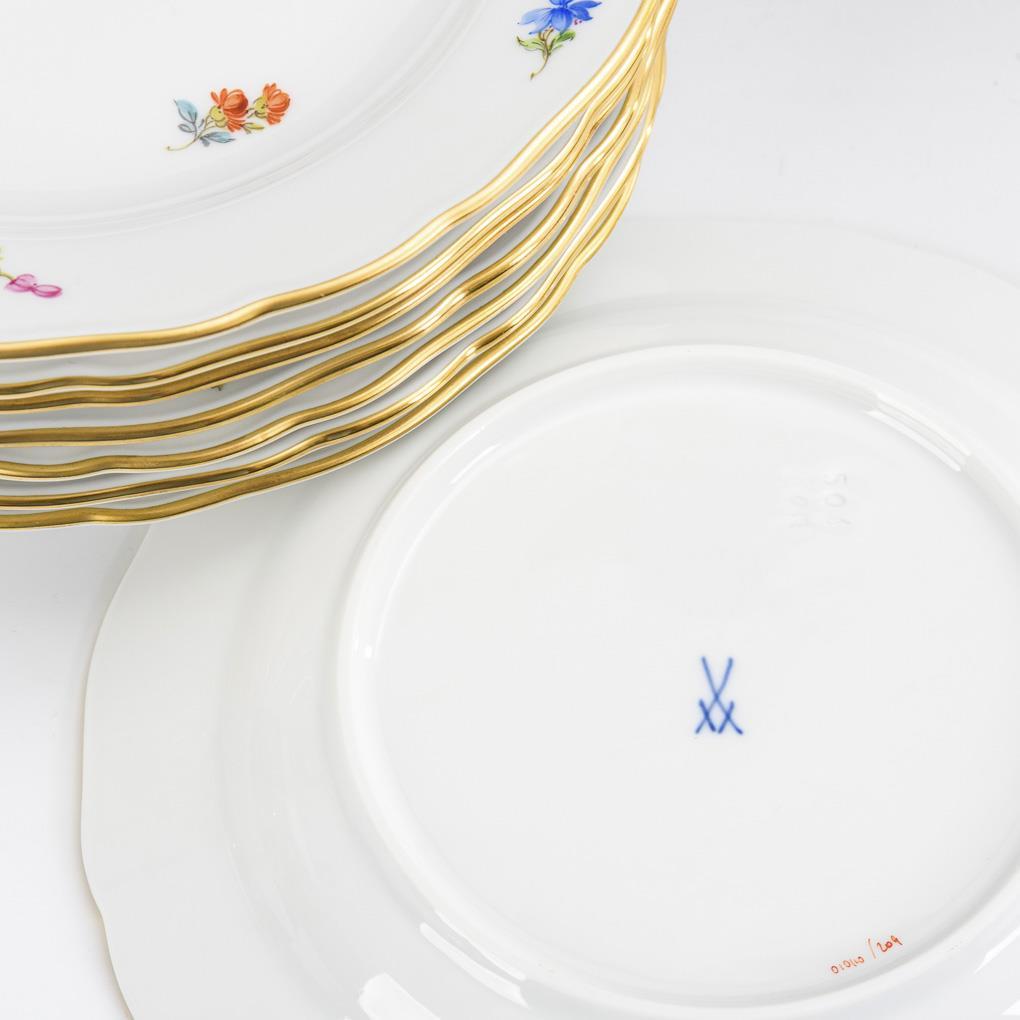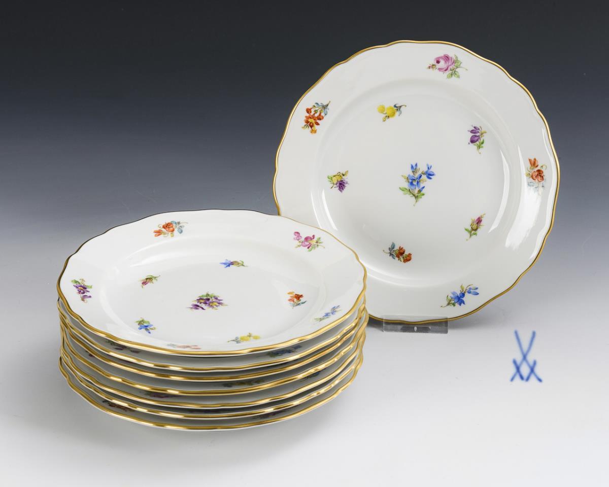 8 Dessertteller mit Streublümchenmalerei. Meissen.