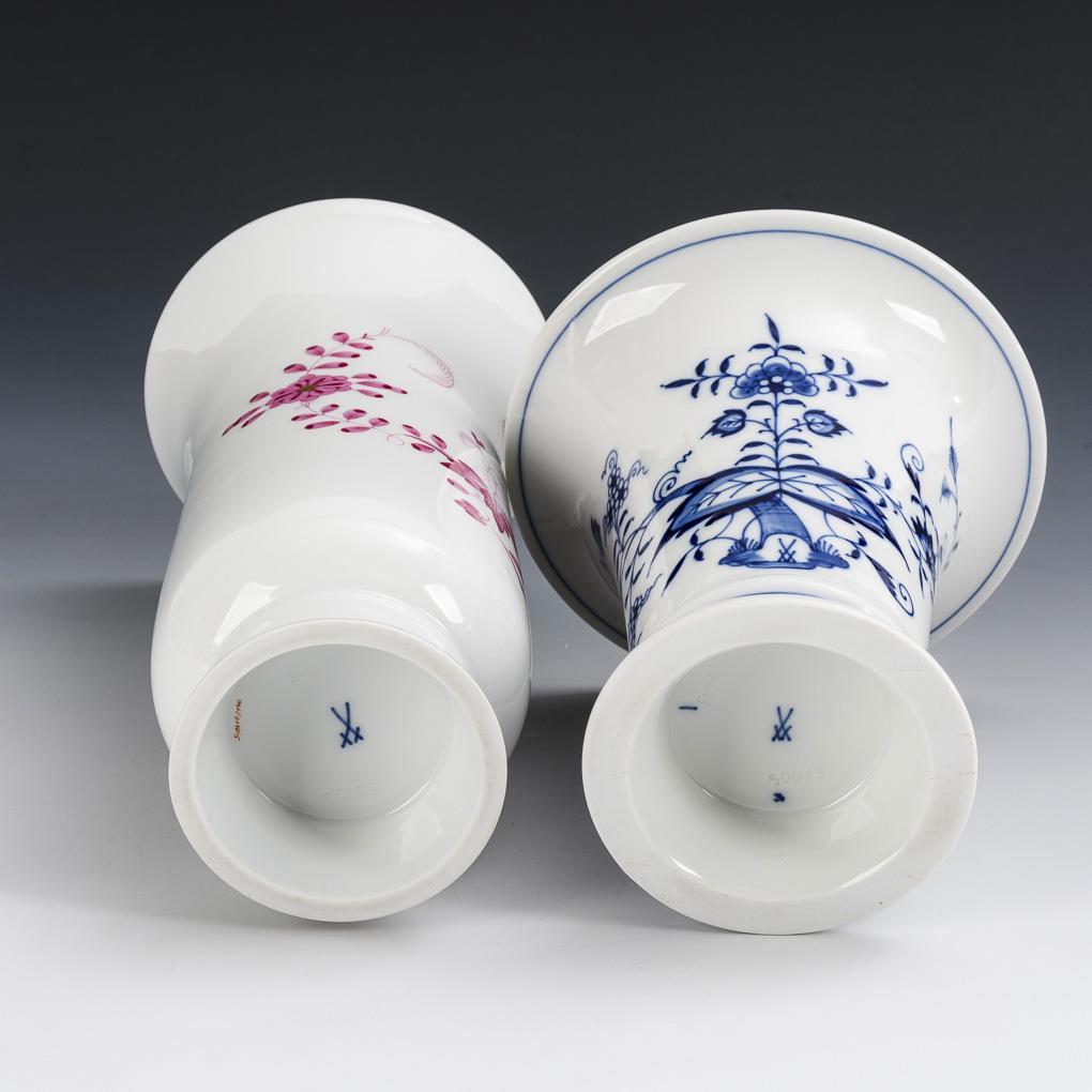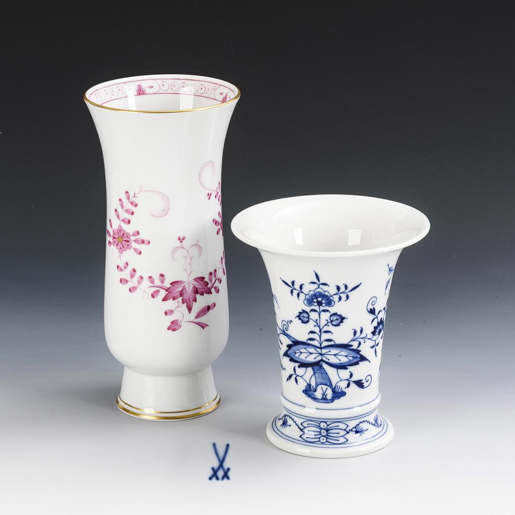 Zwiebelmuster-Vase und Vase "Indisch Purpur". Meissen.