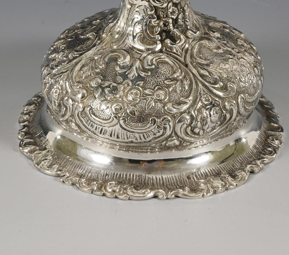 Rundfuß mit Rocaillen- und Blumenreliefs. Leichte Gebrauchsspuren.