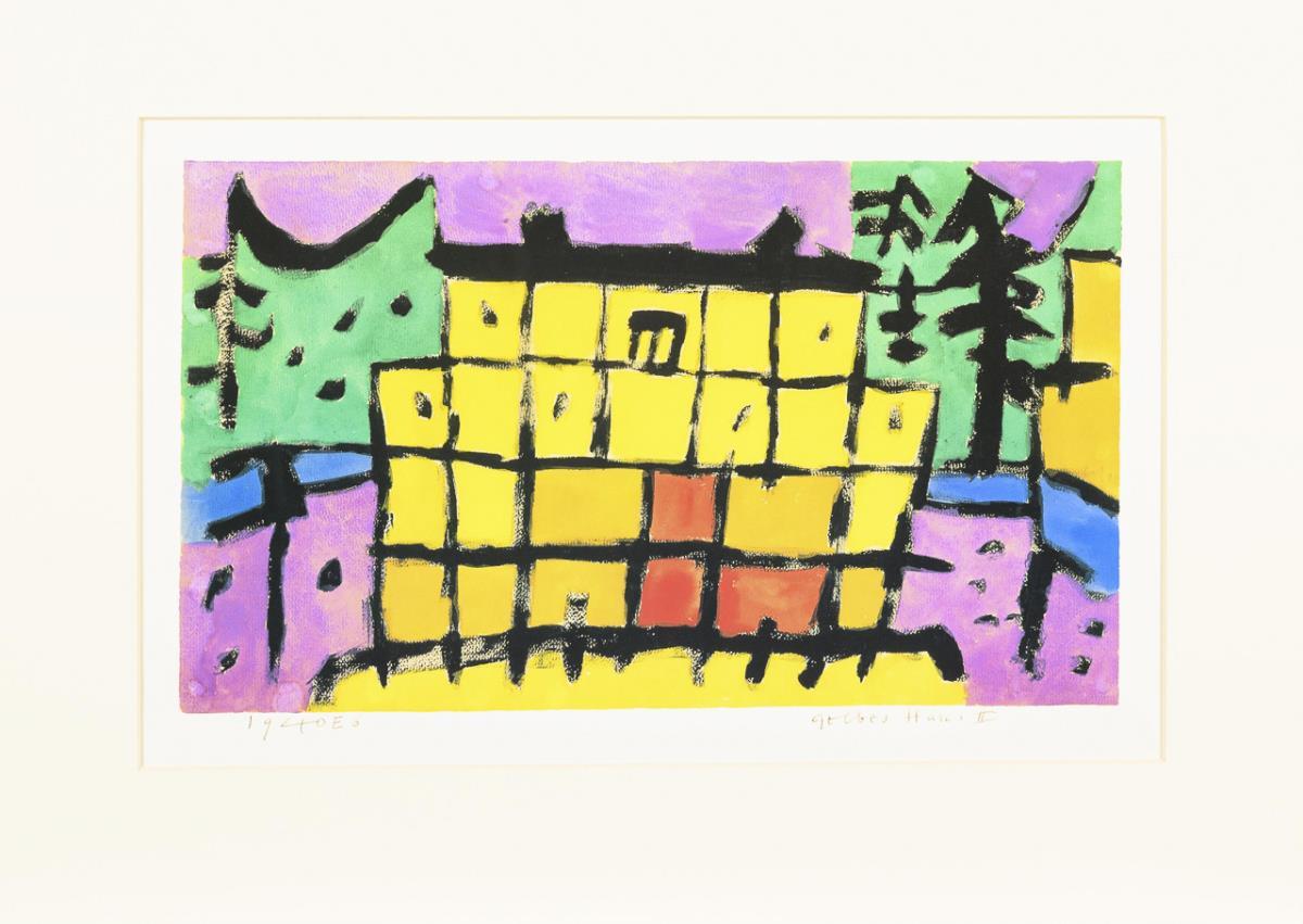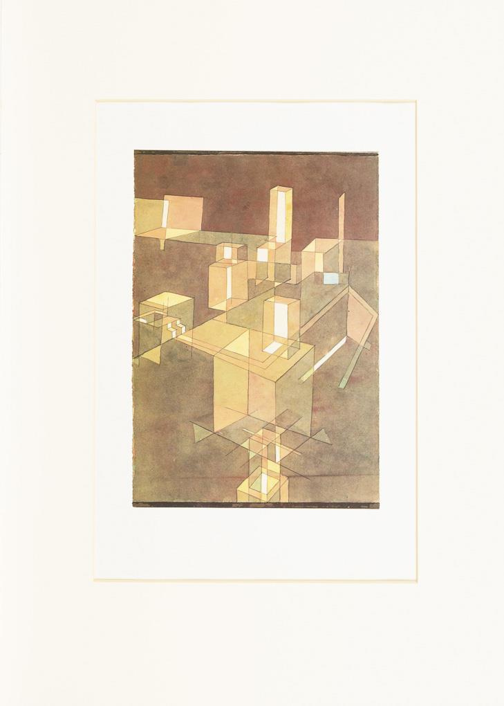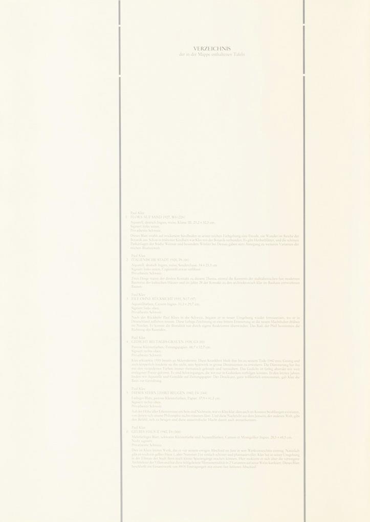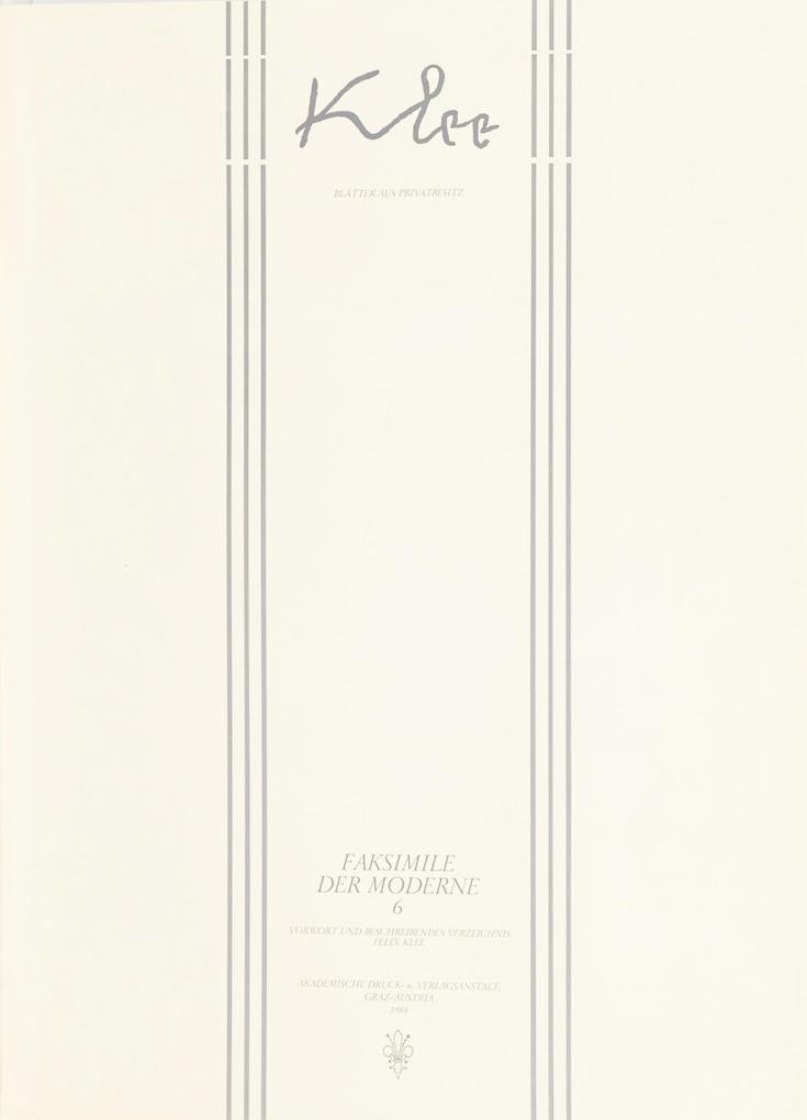 Vollständige Künstlermappe in Original-Kassette mit Prägedruck, mit 6 reproduzierten Werken aus Privatbesitz, Beiblätter mit Vorwort von Felix Klee, Biografie, Inhaltsverzeichnis und Impressum, Exemplar: 302/1000, 1988 (= Faksimile der Moderne 6).
