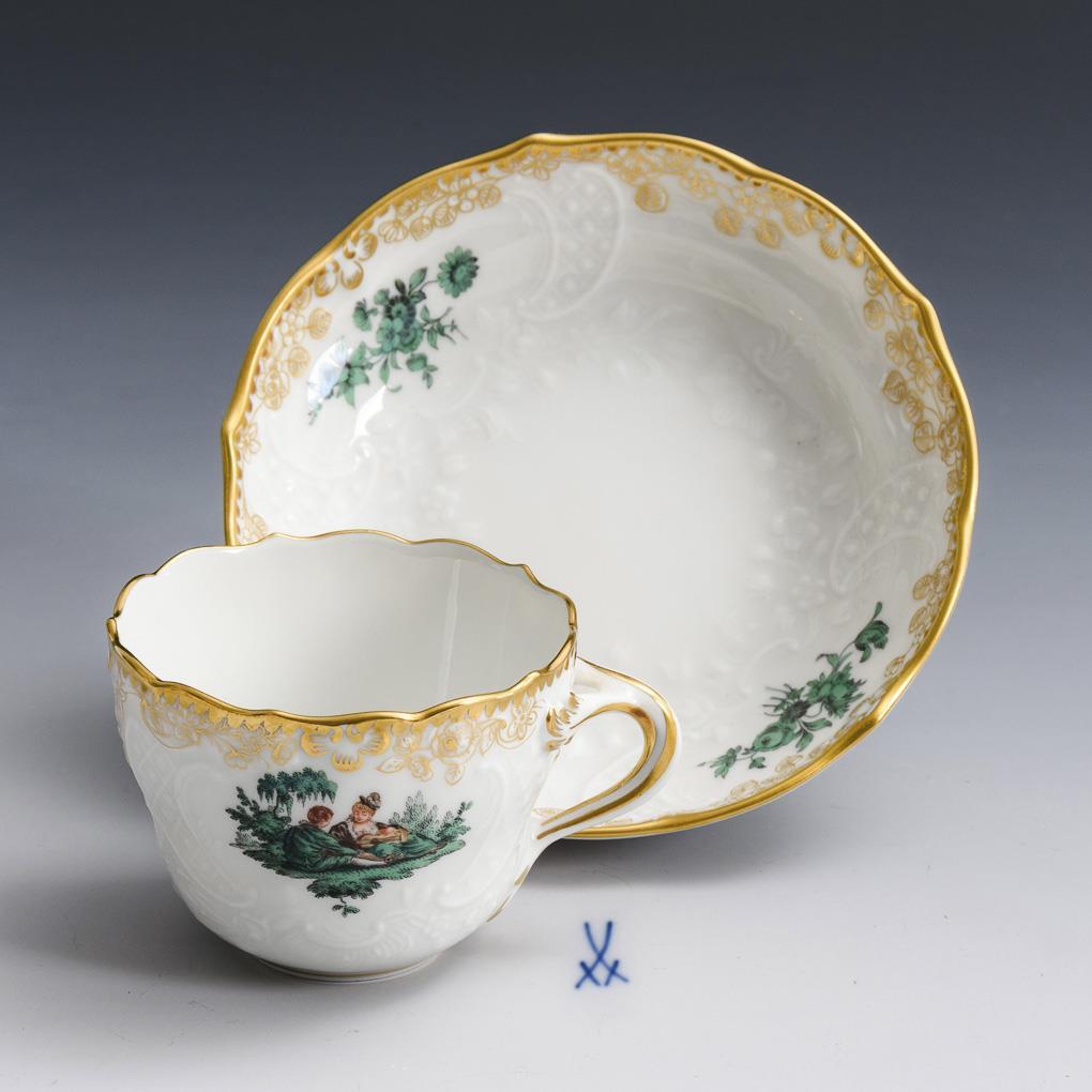 Mokkatasse mit kupfergrüner Watteau-Malerei. Meissen.