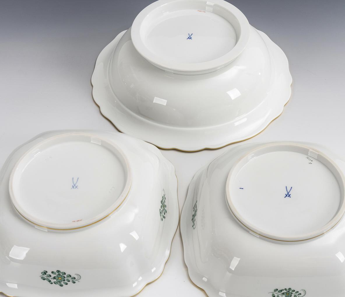 2+1 Schüsseln "Indisch Grün". Meissen.