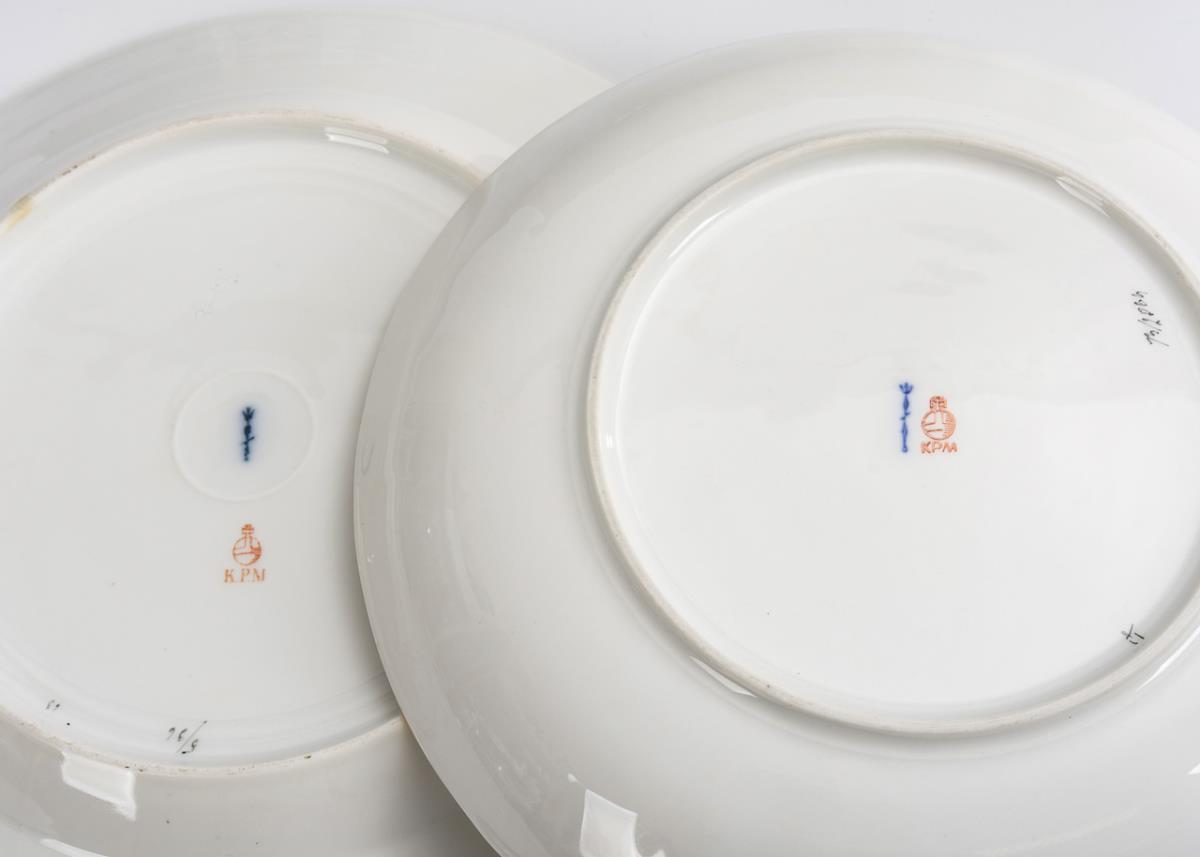 Schale und Teller mit Blumen- und Insektenmalerei. KPM Berlin.