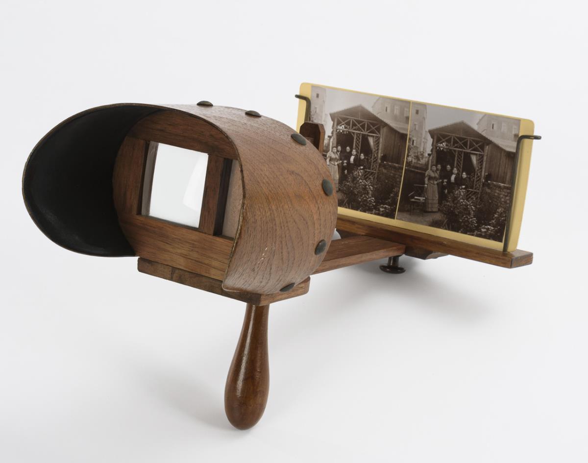 Sie befinden sich hier: Startseite Kategorien Varia Stereoskop-Bildbetrachter mit zahlreichen Fotokarten in einer Schatulle