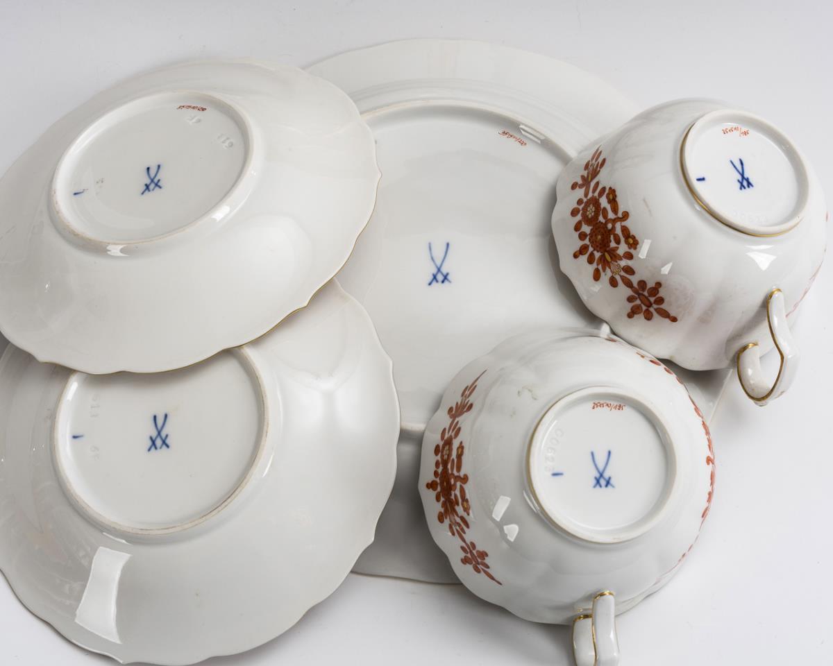 10 Teile für ein Dejeuner "Korallenrote indische Malerei". Meissen.