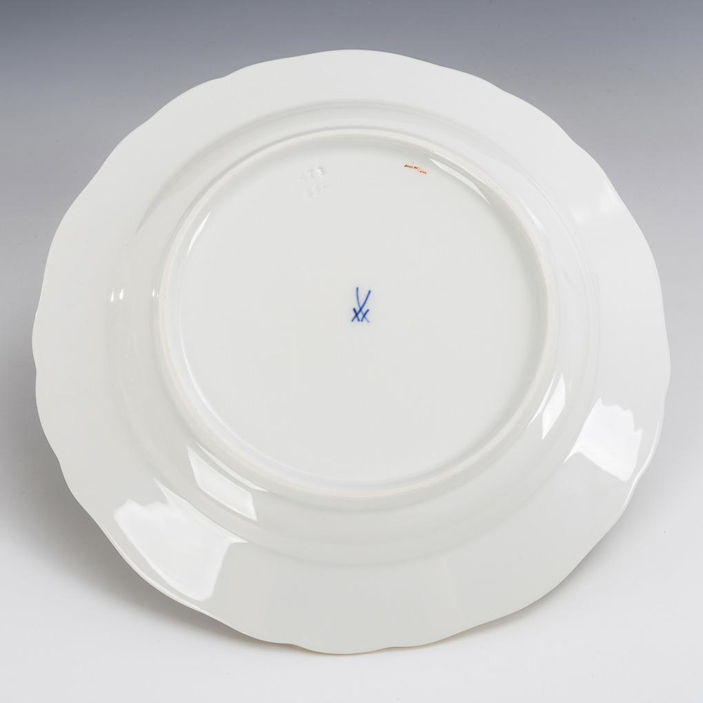 Löwenfinck-Malerei gehört zu den höchsten Klassen Meissener Malerei. Sie erweckt u.a. Aufmerksamkeit wegen der Darstellung exotischer, fabelhafter und seltsamer zottiger Wesen in exotischen Fantasielandschaften. Tatsächlich handelt es sich nicht um ein Fantasietier, das auf diesem Teller zu sehen ist, sondern um ein Tier, das in fernöstlicher Mythologie eine wichtige Rolle spielt. Das sog. "Kilin" (chin.) oder "Kirin" (japan.) hat den Körper eines Hirsches, den Schwanz eines Rindes, mitunter Fischschuppen und gespaltene Hufe mit Haarquasten. Es gilt als Symbol unendlicher Güte und gehört zu den vier heiligen Tieren. Sein "Erfinder" auf Meissener Porzellan ist der berühmte aus der Höroldt-Schule stammende Porzellanmaler Adam Friedrich von Löwenfinck (1714-1754) (vgl. Sonntag, Hans: Die Botschaft des Drachen, , S. 72/73, Walcha, Otto, Meißener Porzellan, S. 67f.).
