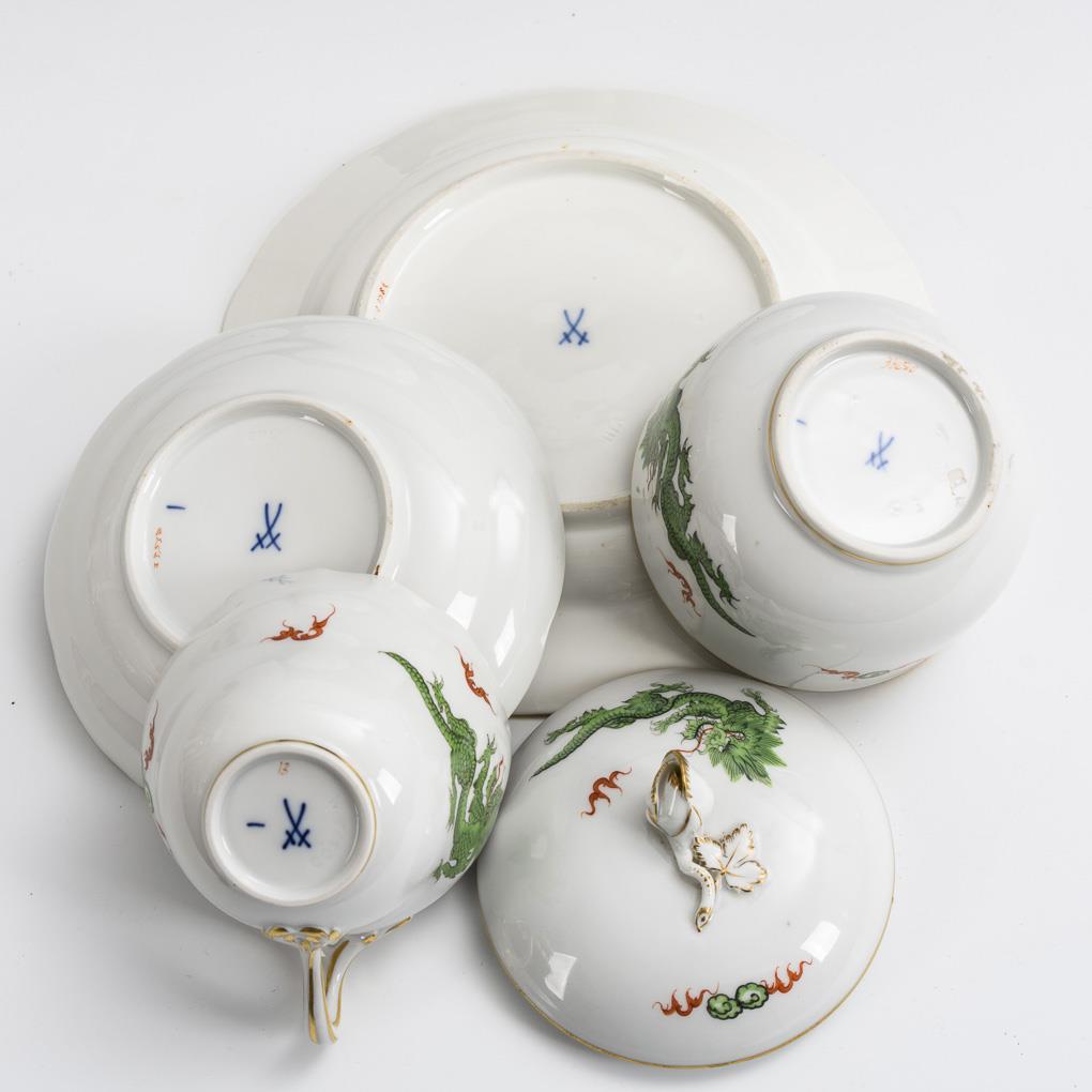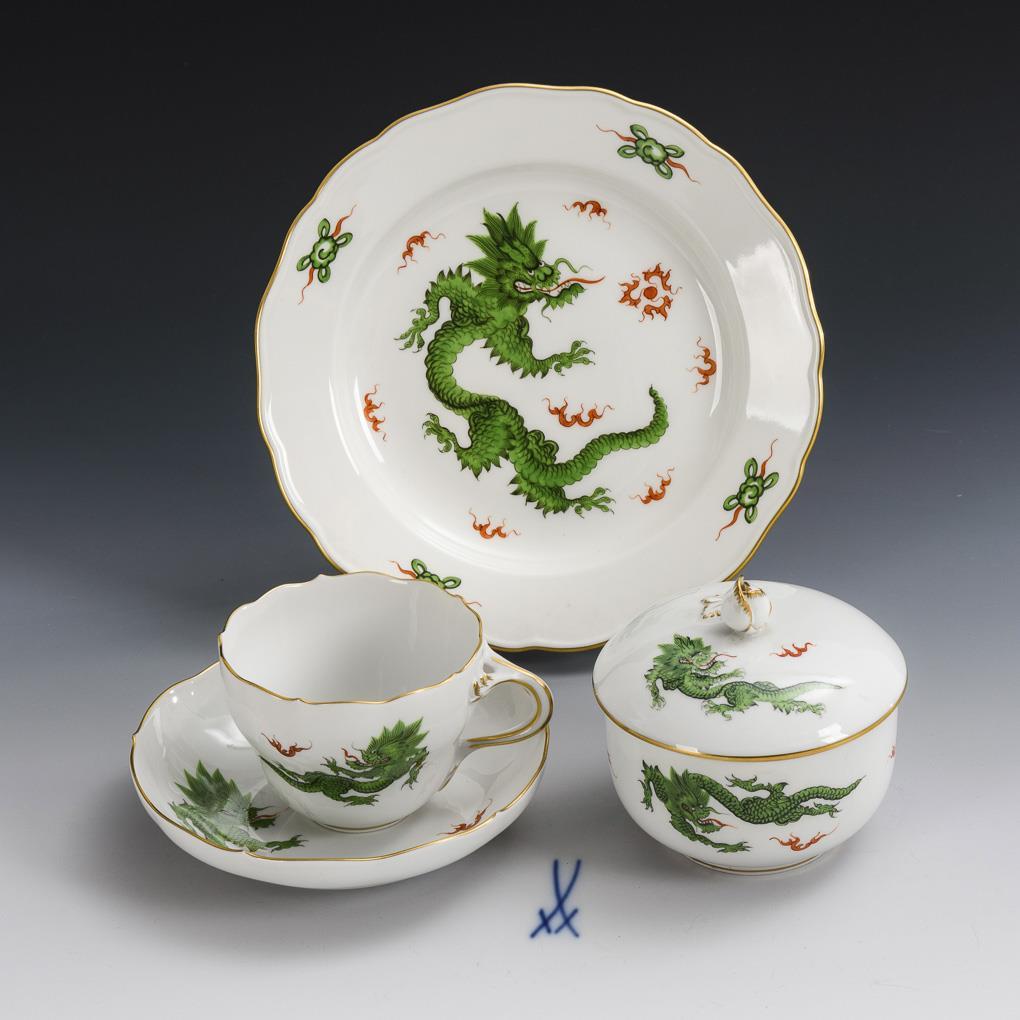 Gedeck und Zuckerdose "Grüner Drache". Meissen.