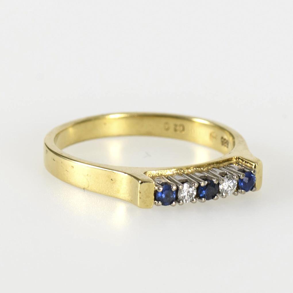 3 chatongefasste Saphire und 2 Brillanten, zwischen mittlerer Schiene.