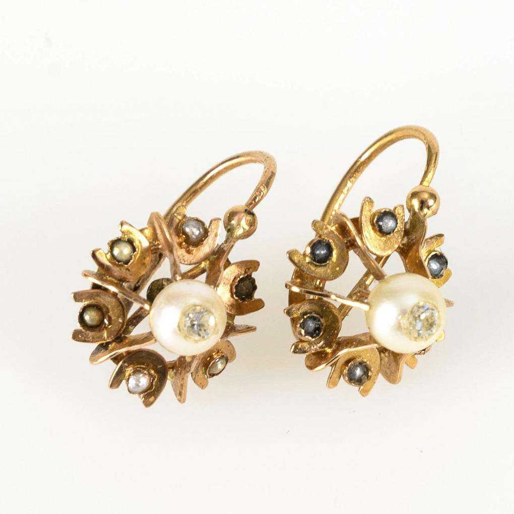 Ohrhängerpaar mit Zuchtperlen und Brillanten.