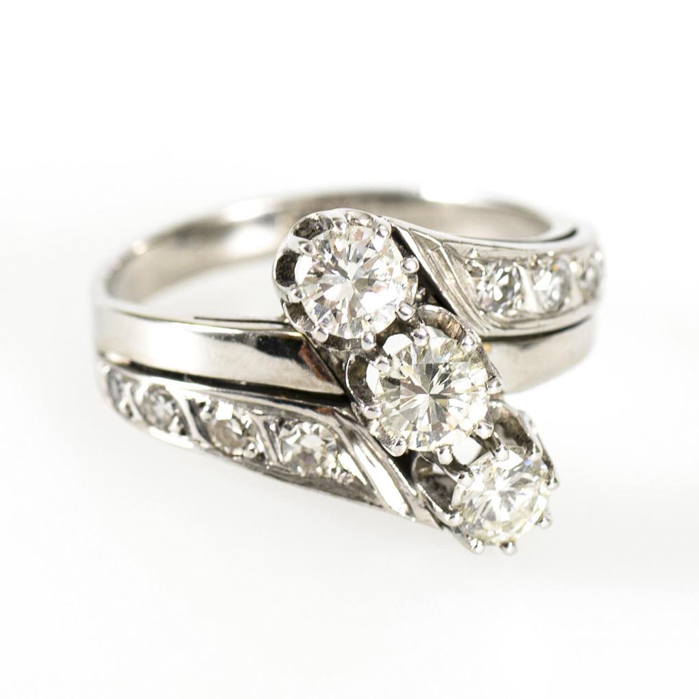 Weißgold 750 geprüft. Brillanten zus. ca. 0,90 ct/schwach getöntes Weiß/vvs. 6,2 g.