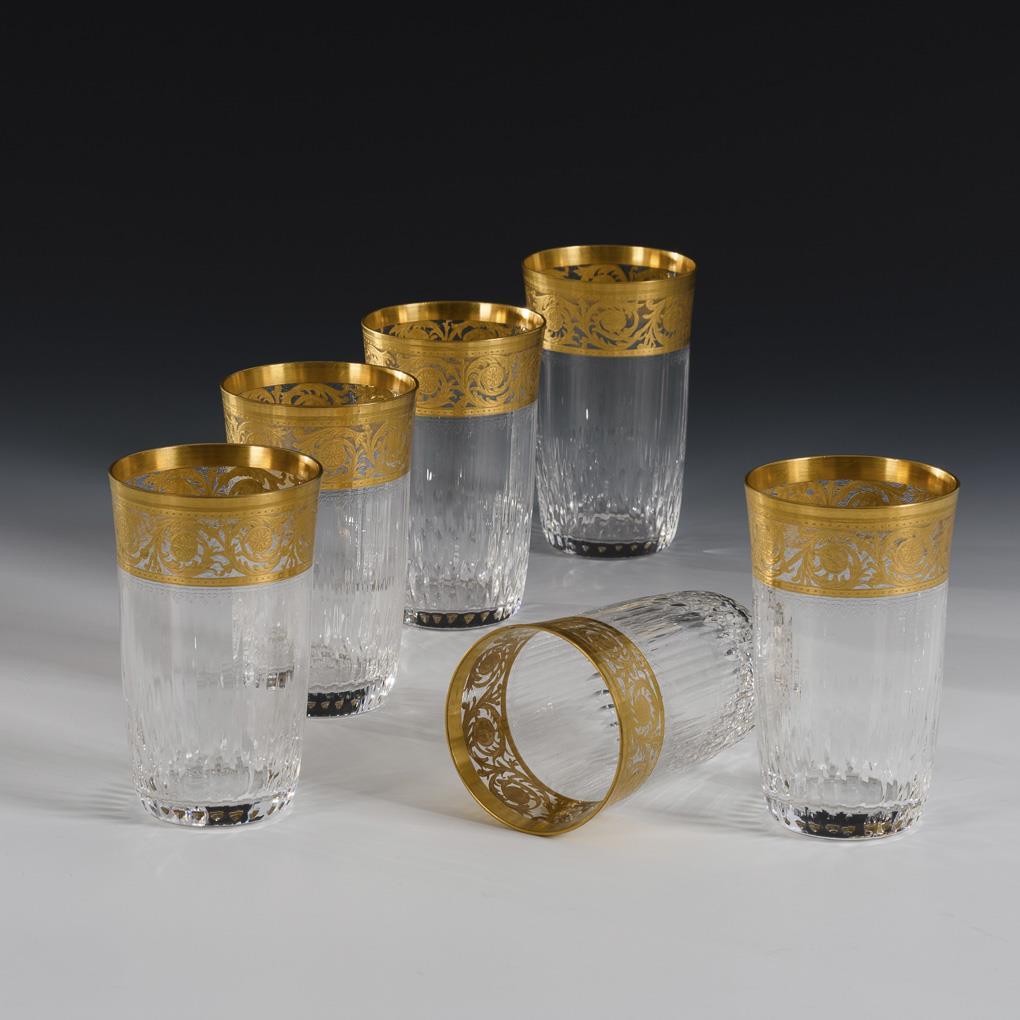 Farbloses Glas, Ätzbordüre. H 11,5 cm.