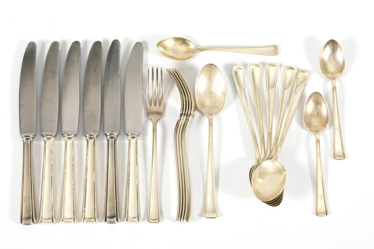 Art-déco-Besteck für 6 Personen. Görlitzer Schmuck- und Silberwarenfabrik.