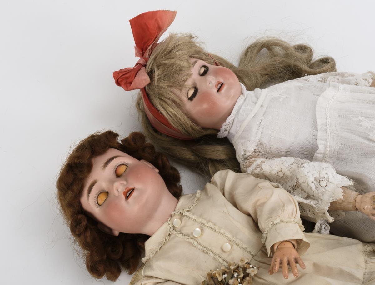 2 Porzellankopfpuppen. Georg Borgfeldt & Co und Schoenau & Hoffmeister.