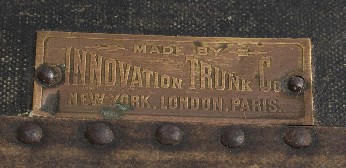 Früher Reisekoffer. Innovation Trunk Co. New York, London, Paris.