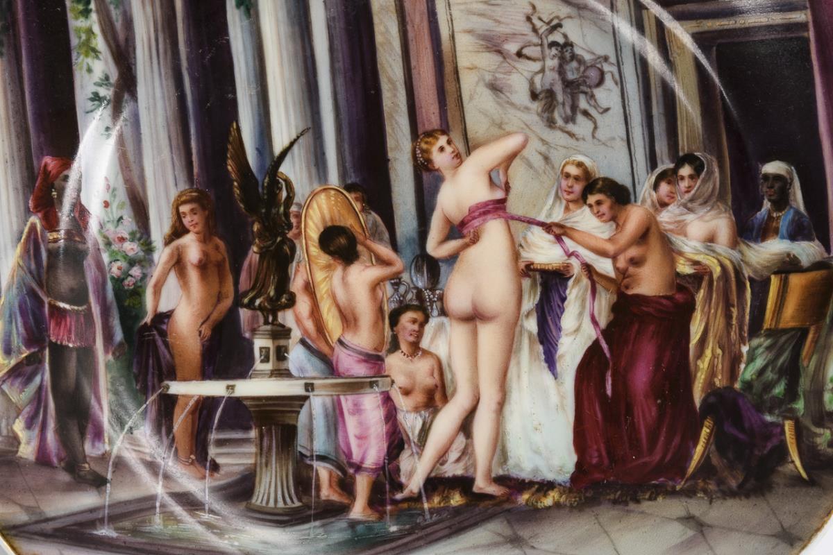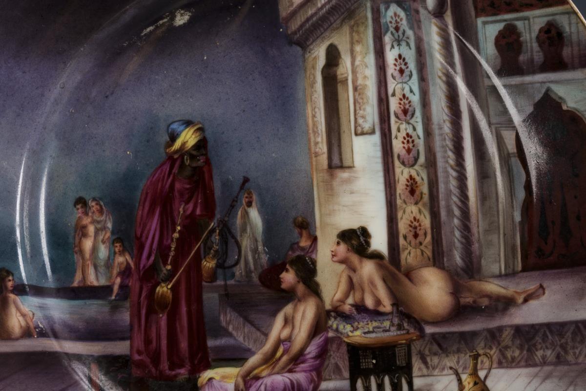 Mehrpassige Teller mit der Darstellung je einer Haremsszene. Goldrand berieben.