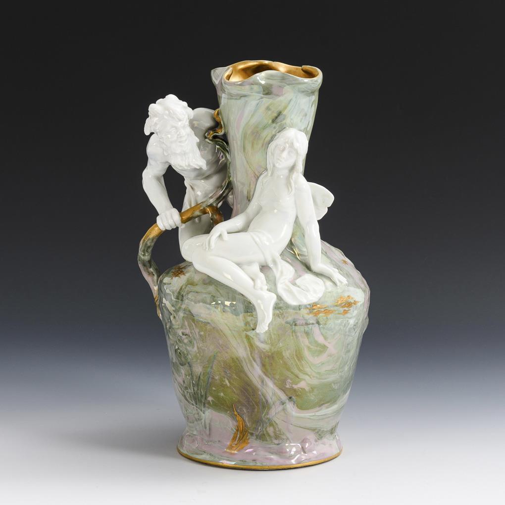 Jugendstil-Vase mit Nymphe und Satyr. Rosenthal.
