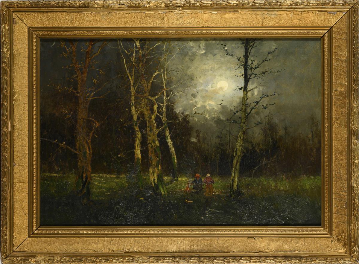 Waldlandschaft unter Vollmond mit Staffage