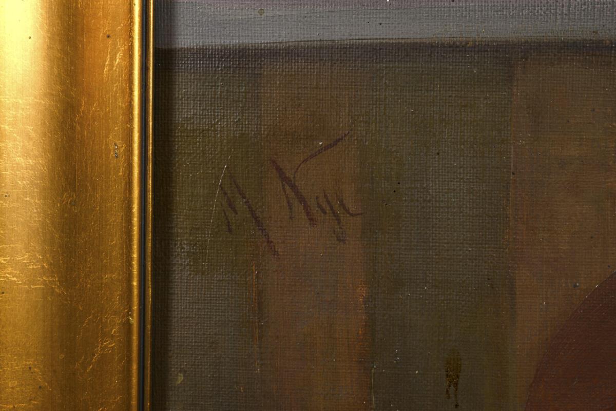 Öl/Leinwand. Links unten signiert, verso Reste eines Klebezettels der Kunsthandlung Adrian Brugger München.