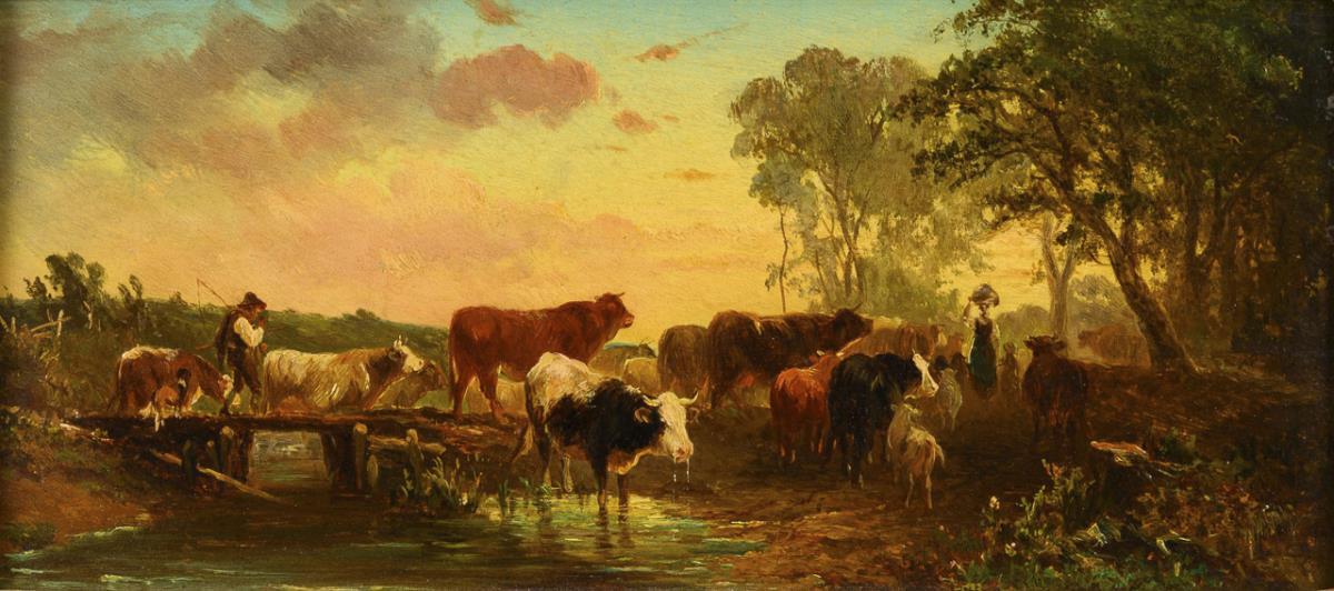 Die Tiere mit dem Hirtenpaar an einer Wasserstelle sowie die Tiere mit dem Hirtenpaar an einer kleinen Brücke.
