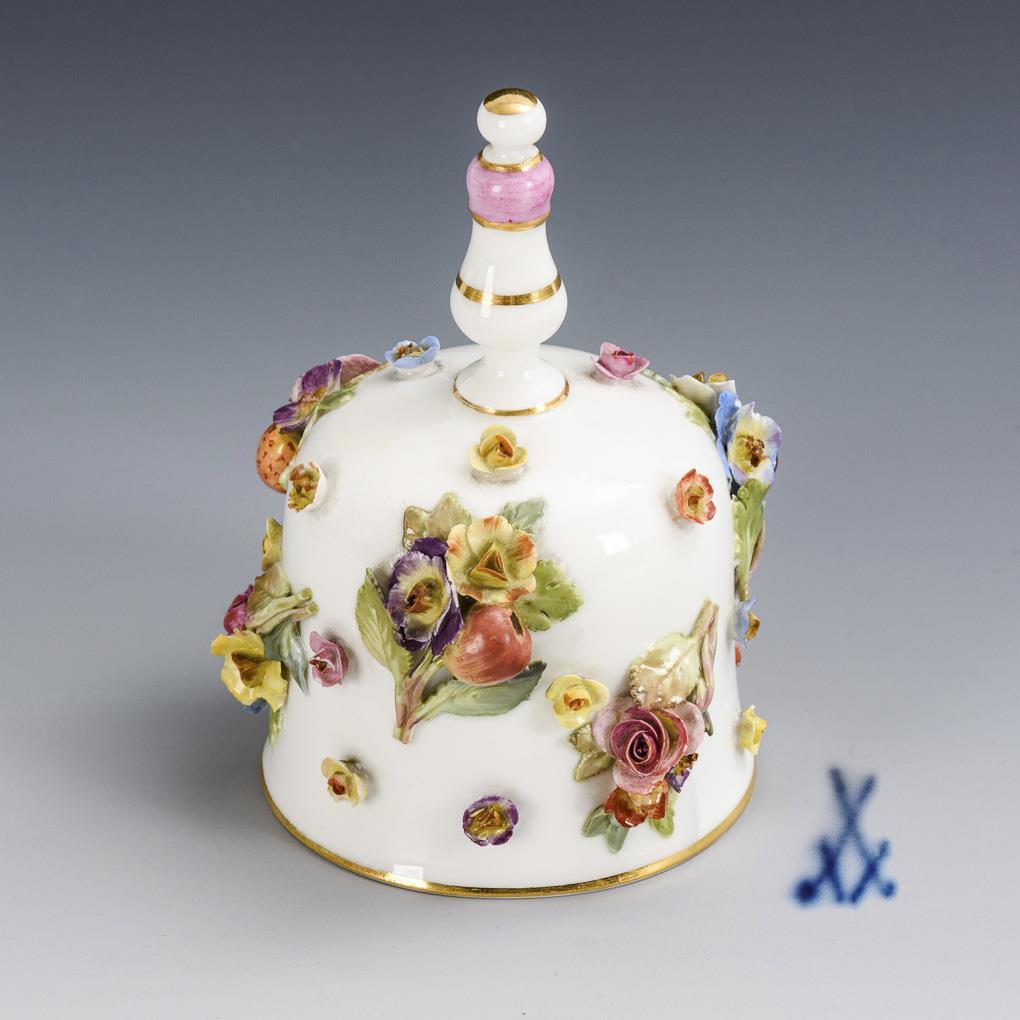 Tischglocke mit Blüten- und Fruchtbelag. Meissen.