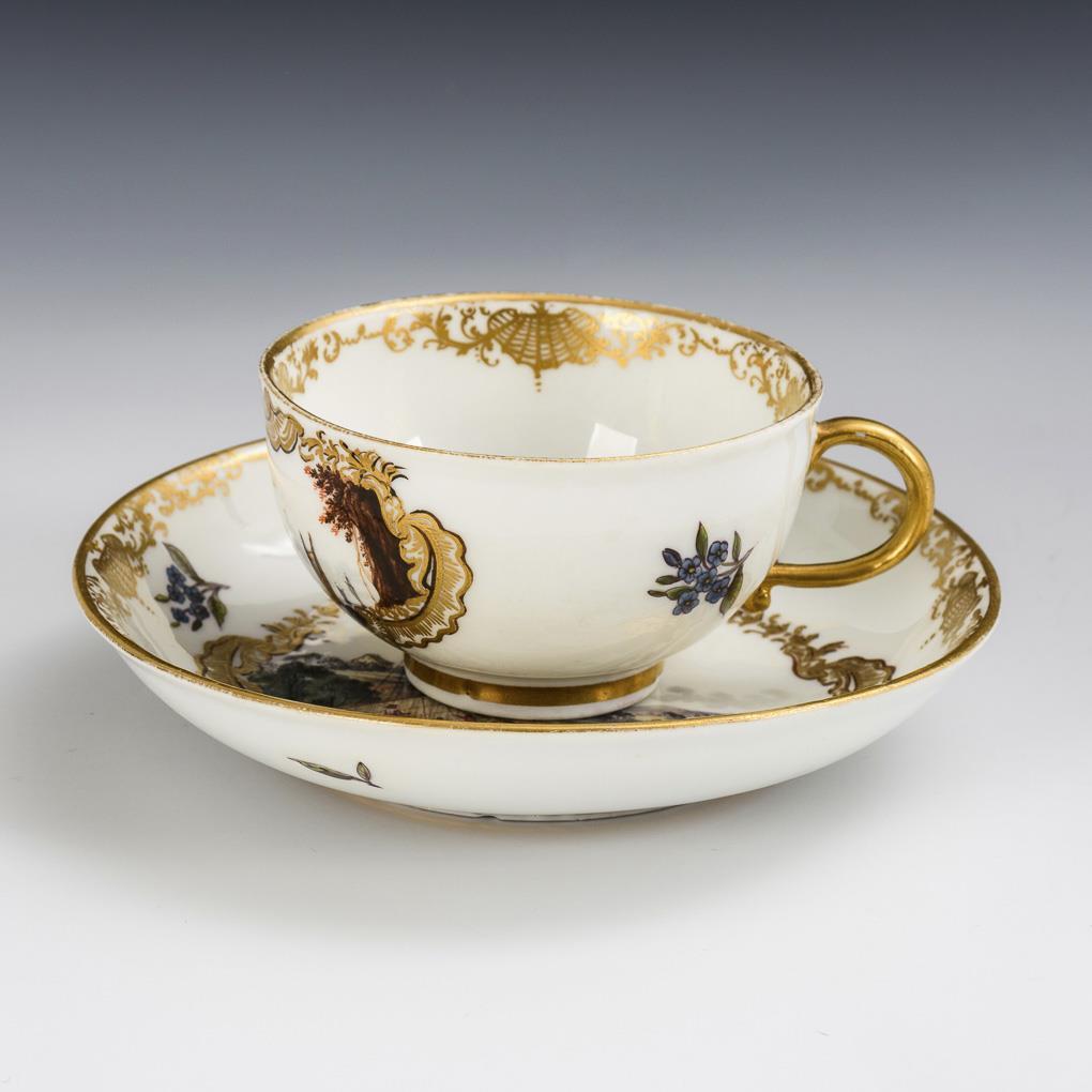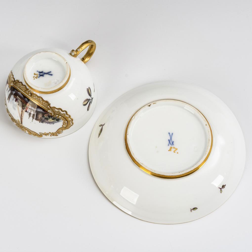 Schwertermarke, um 1735/40, Goldmalerziffer "17." auf Tasse und Untertasse.