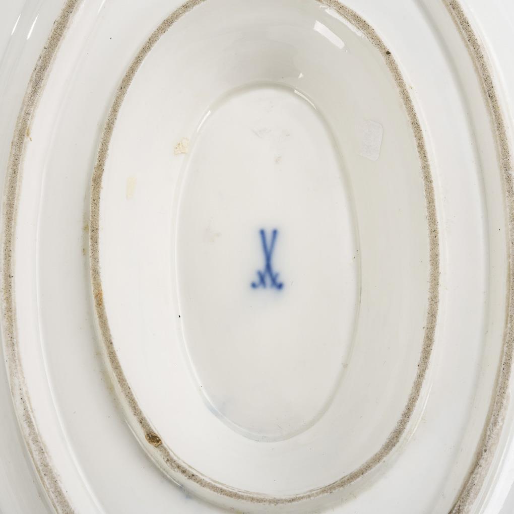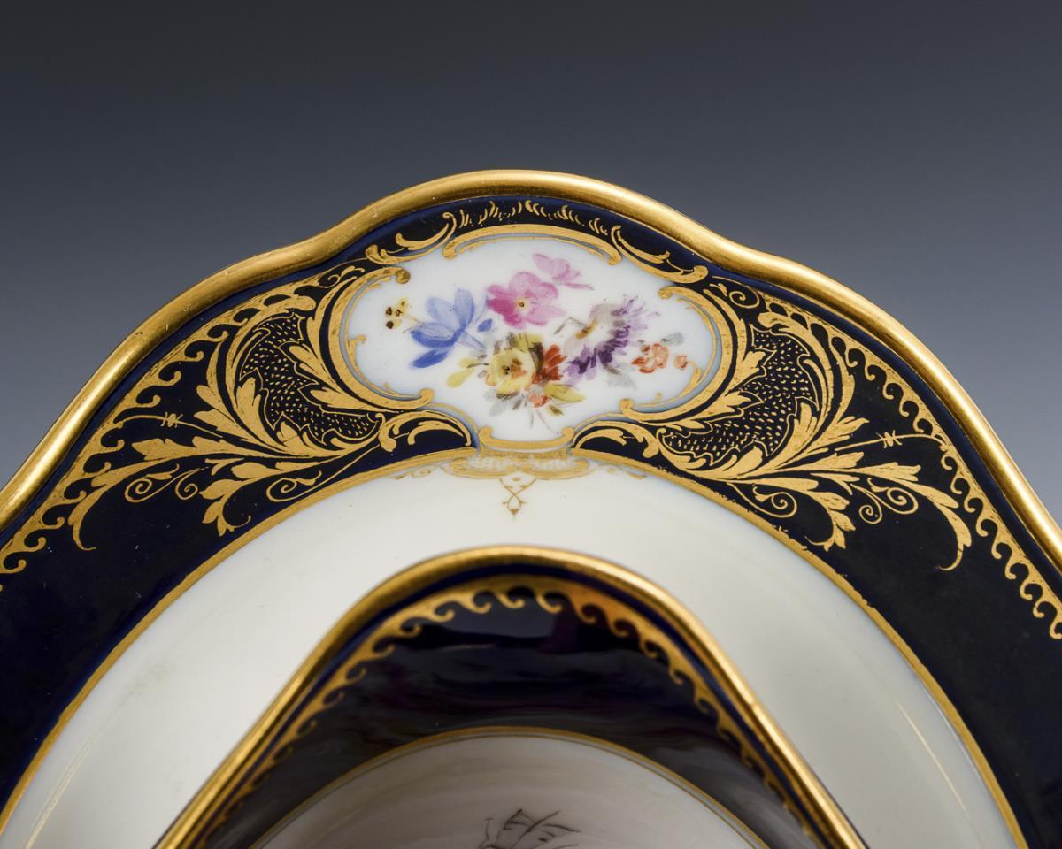 Sauciere mit Kobaltrand und Blumenmalerei. Meissen.