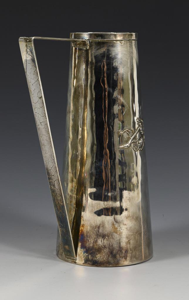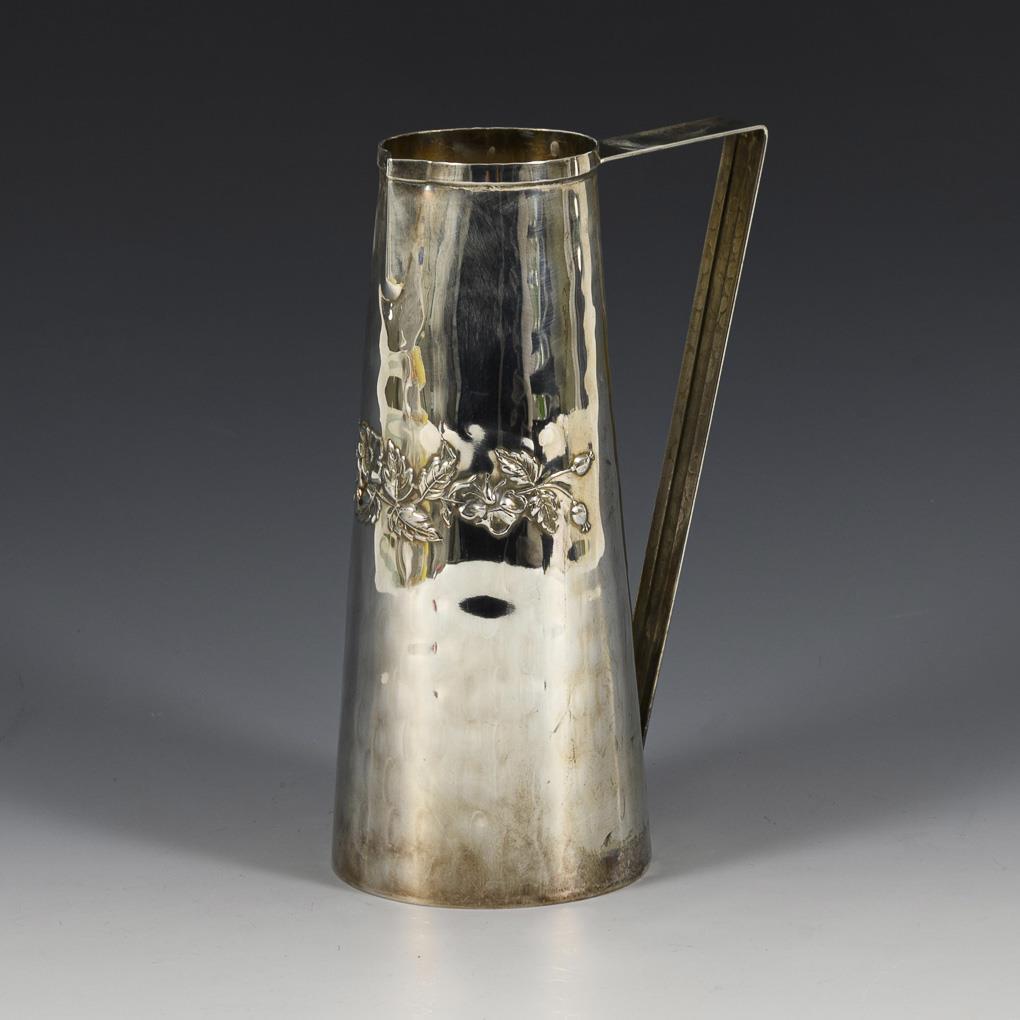 Konischer Korpus mit reliefiertem Blütenzweig und gewinkeltem Henkel.