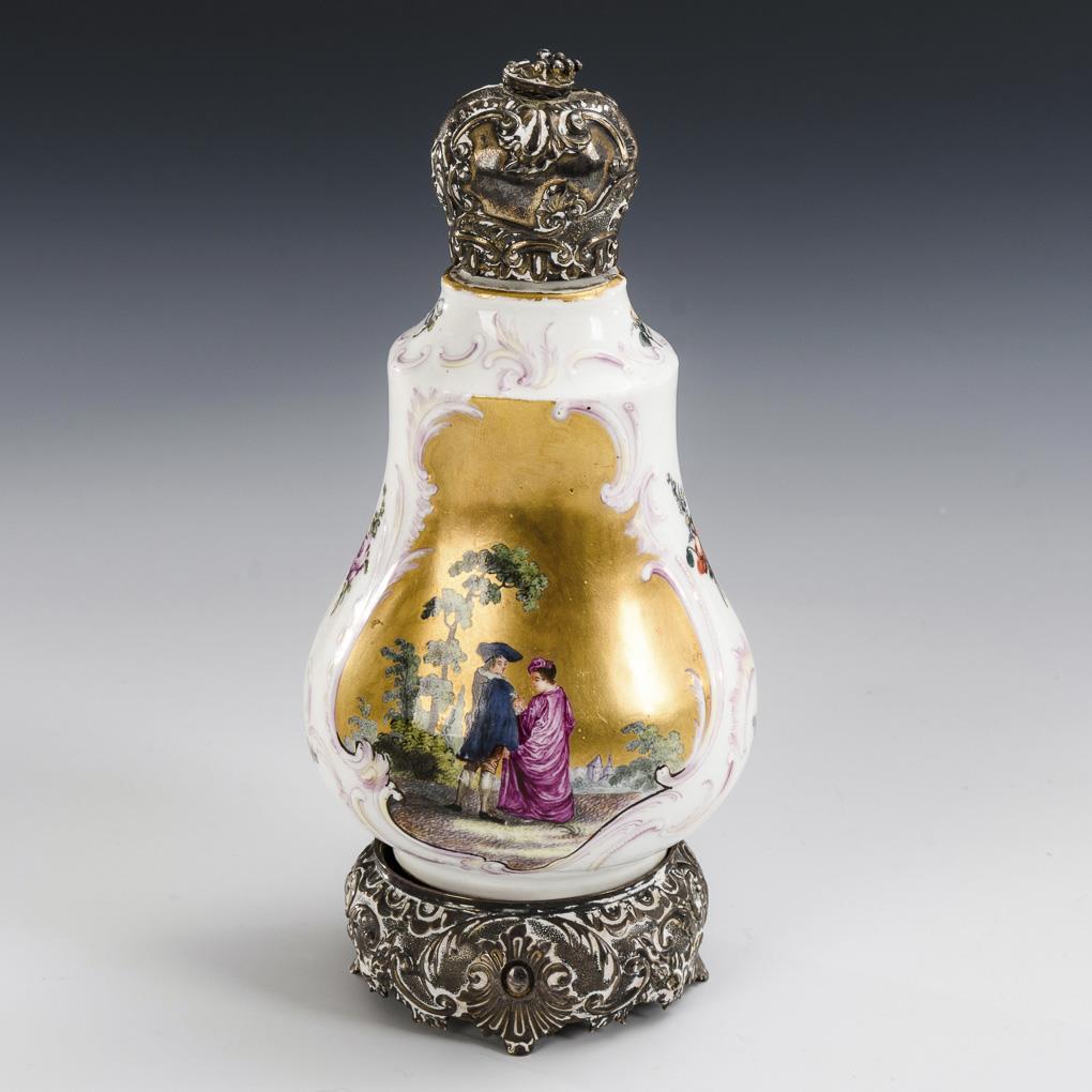 Barocke Teedose mit Silbermontierung. Meissen.