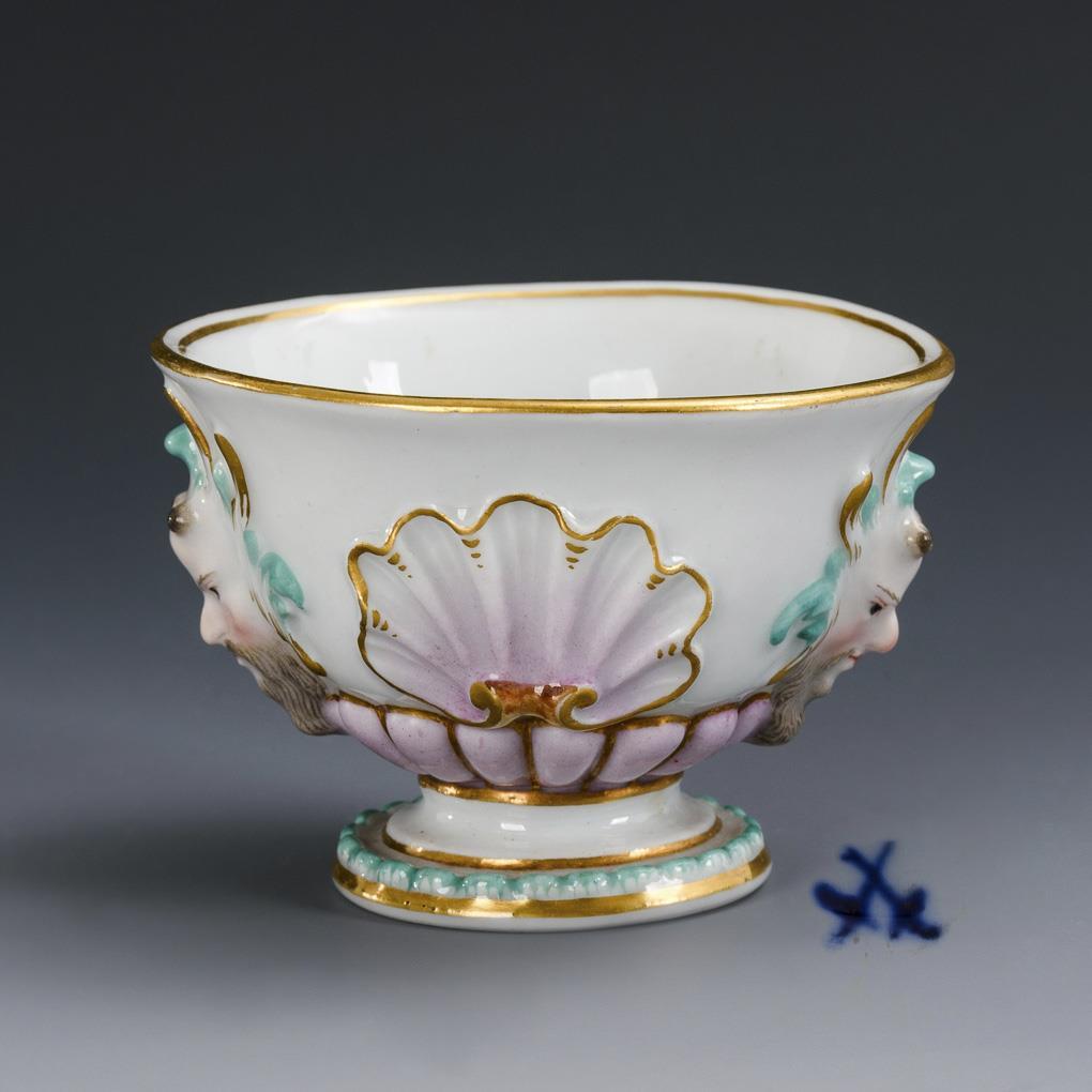 Gefußte Kraterschale mit Muschel- und Maskaronenrelief.