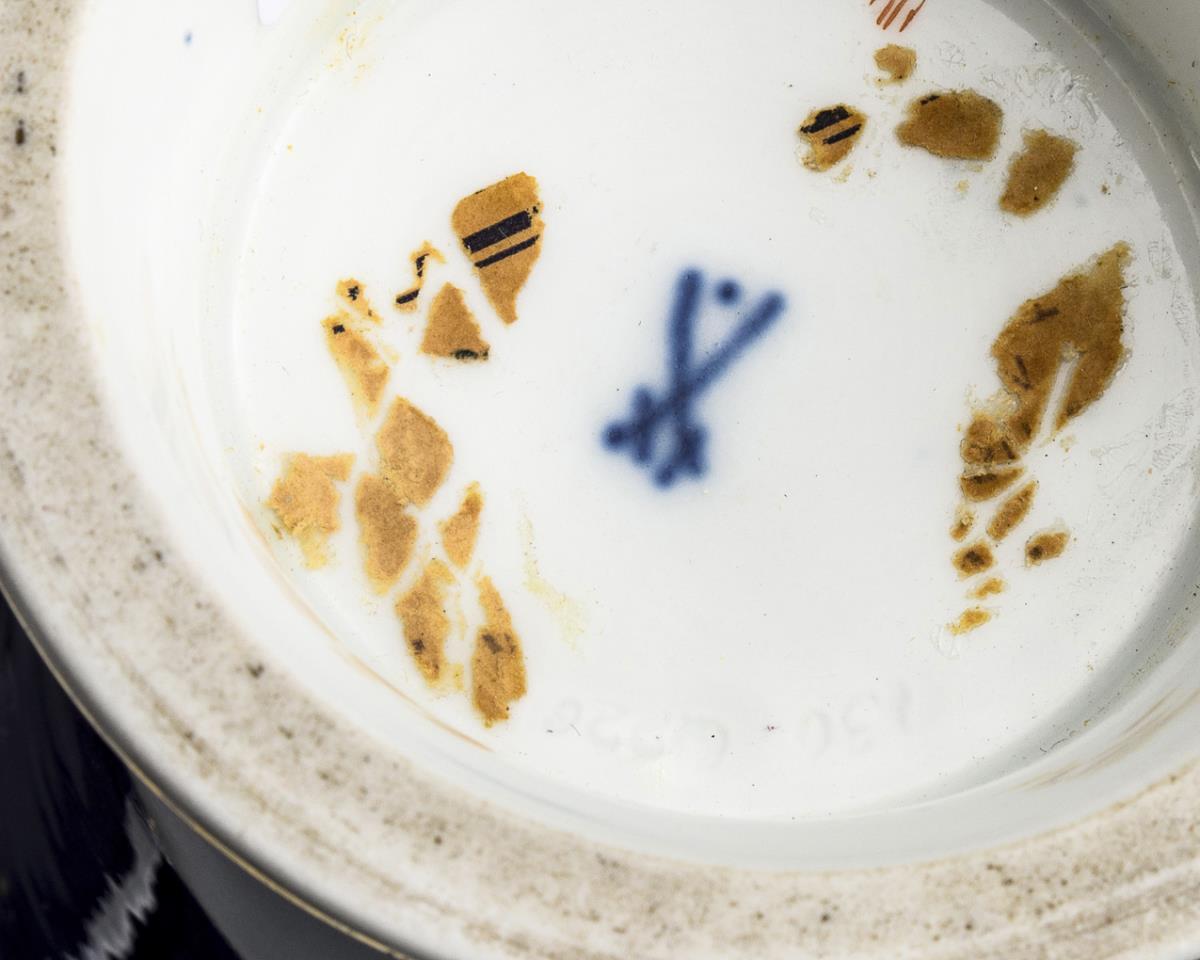 Kratervase mit Kobaltfond und Blumenmalerei. Meissen.