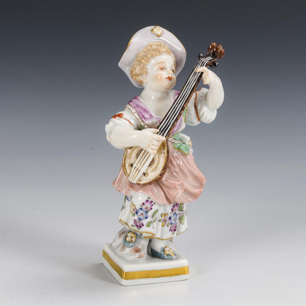 1 Finger geklebt, minimale Glasurabplatzer am Lautenhals, 1 Wirbel fehlt.