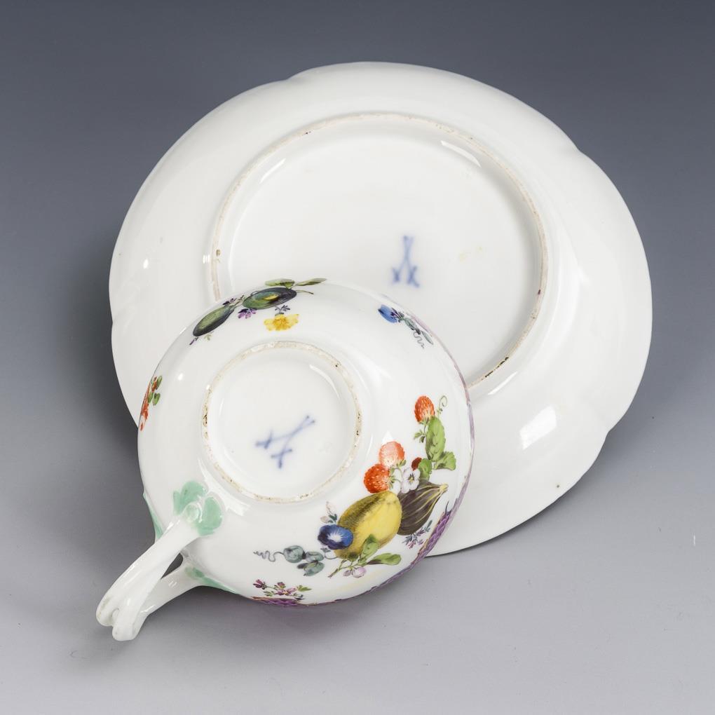 Barocke Tasse mit Frucht- und Blumenmalerei. Meissen.
